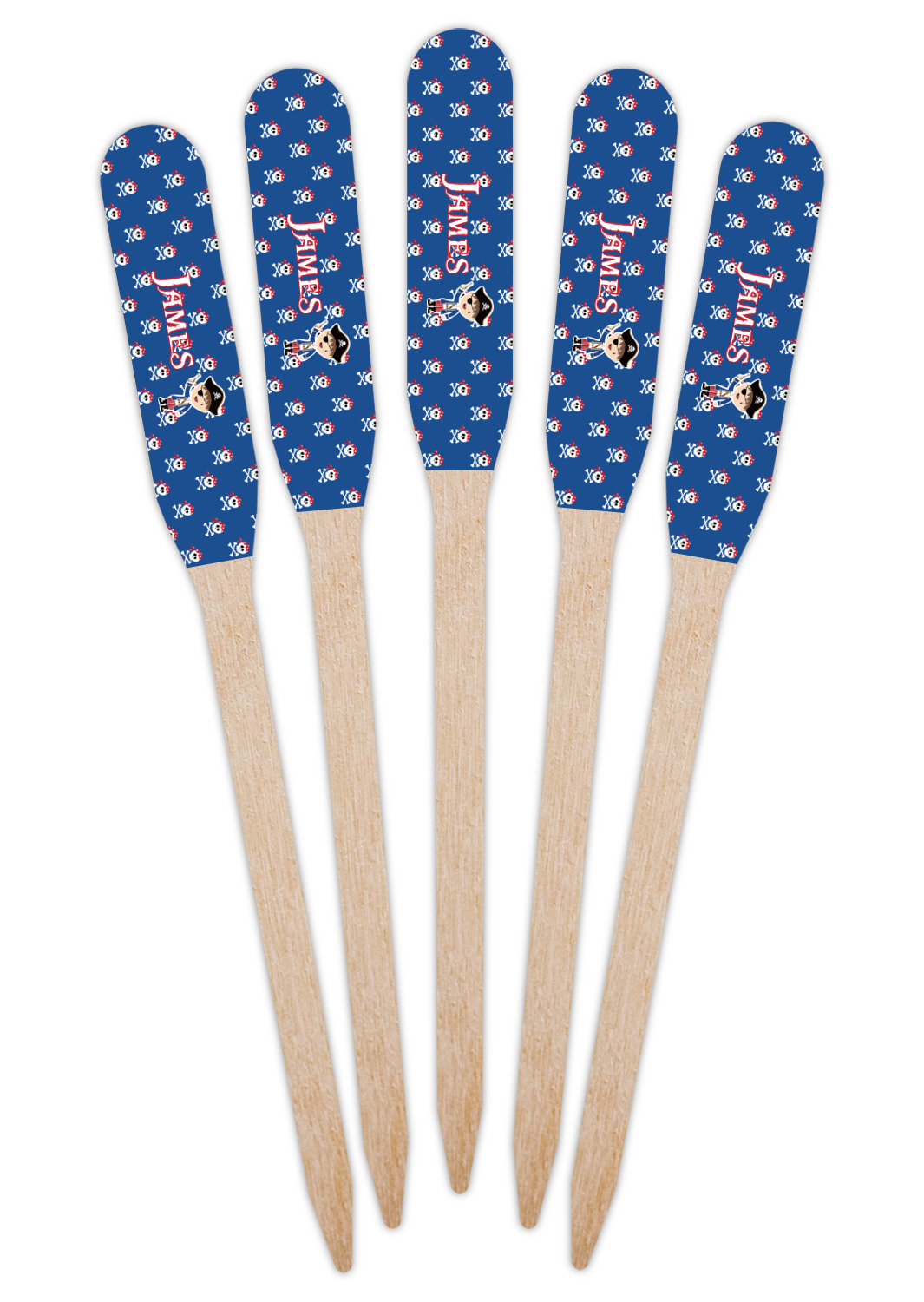 Our paddle style food & drink picks are available in 2 print styles - single sided and double sided.