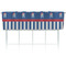 This patriotic pirate brings back the days of Paul Revere. The traditional black and white skull and crossbones are adorned with red and white polka dot dew rags and are highlighted on a backdrop of patriotic blue. The coordinating bottom pattern of patriotic blue and white stripes ties the entire design together.