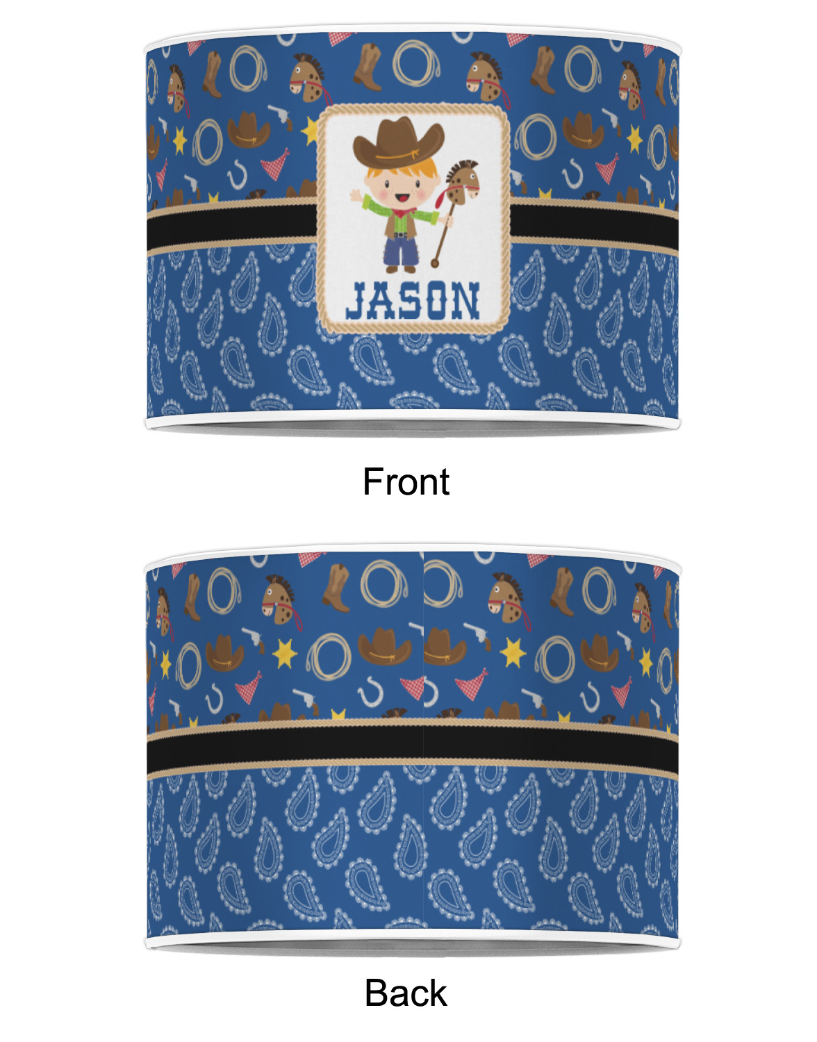 Our personalized drum lamp shades are available in 2 different materials: Poly-film or fabric. Poly-film lamp shades come with the option of white or black border trims to best match your customized design. Fabric lamp shades are finished with a rolled edge for a clean modern look.