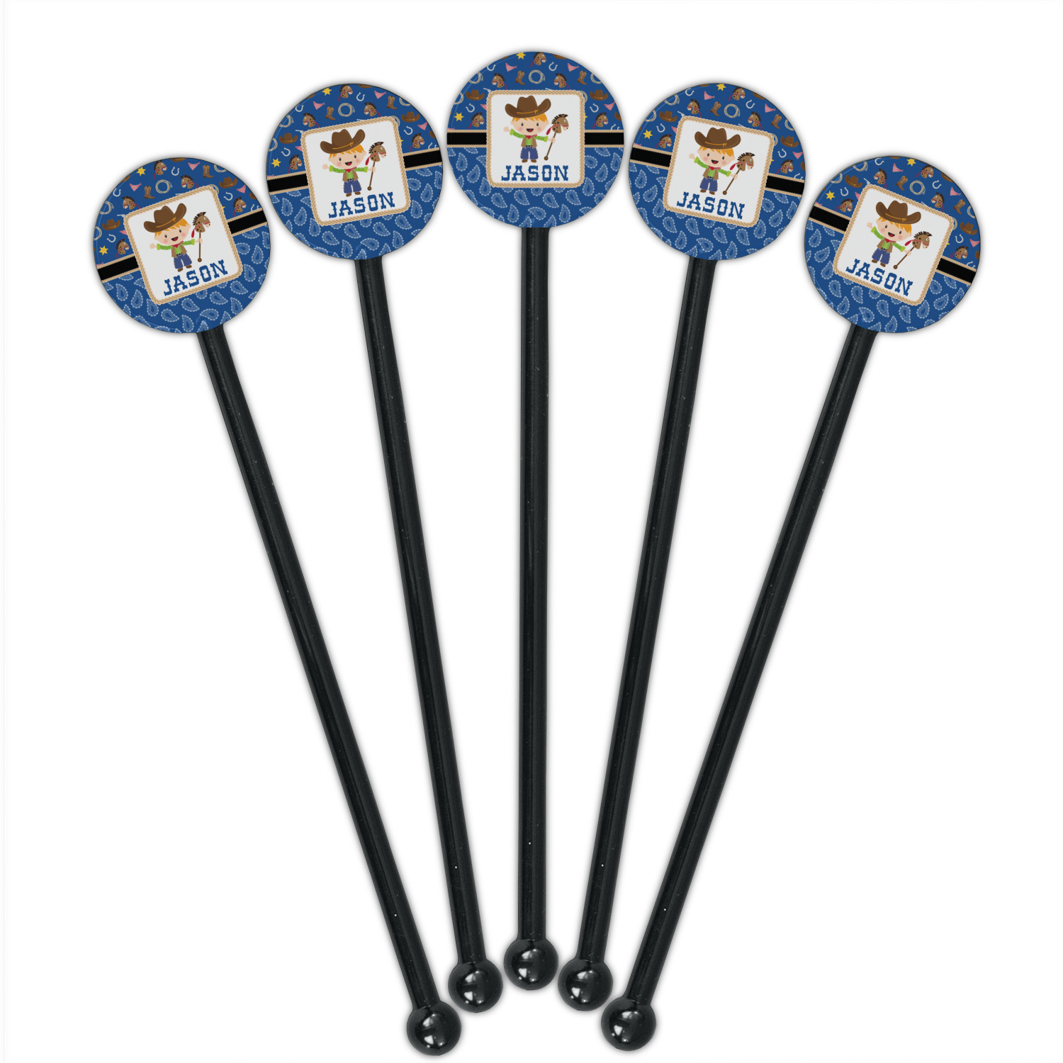 Horseshoe Designs for 5.5" Round Plastic Stir Sticks - Black - Single-Sided