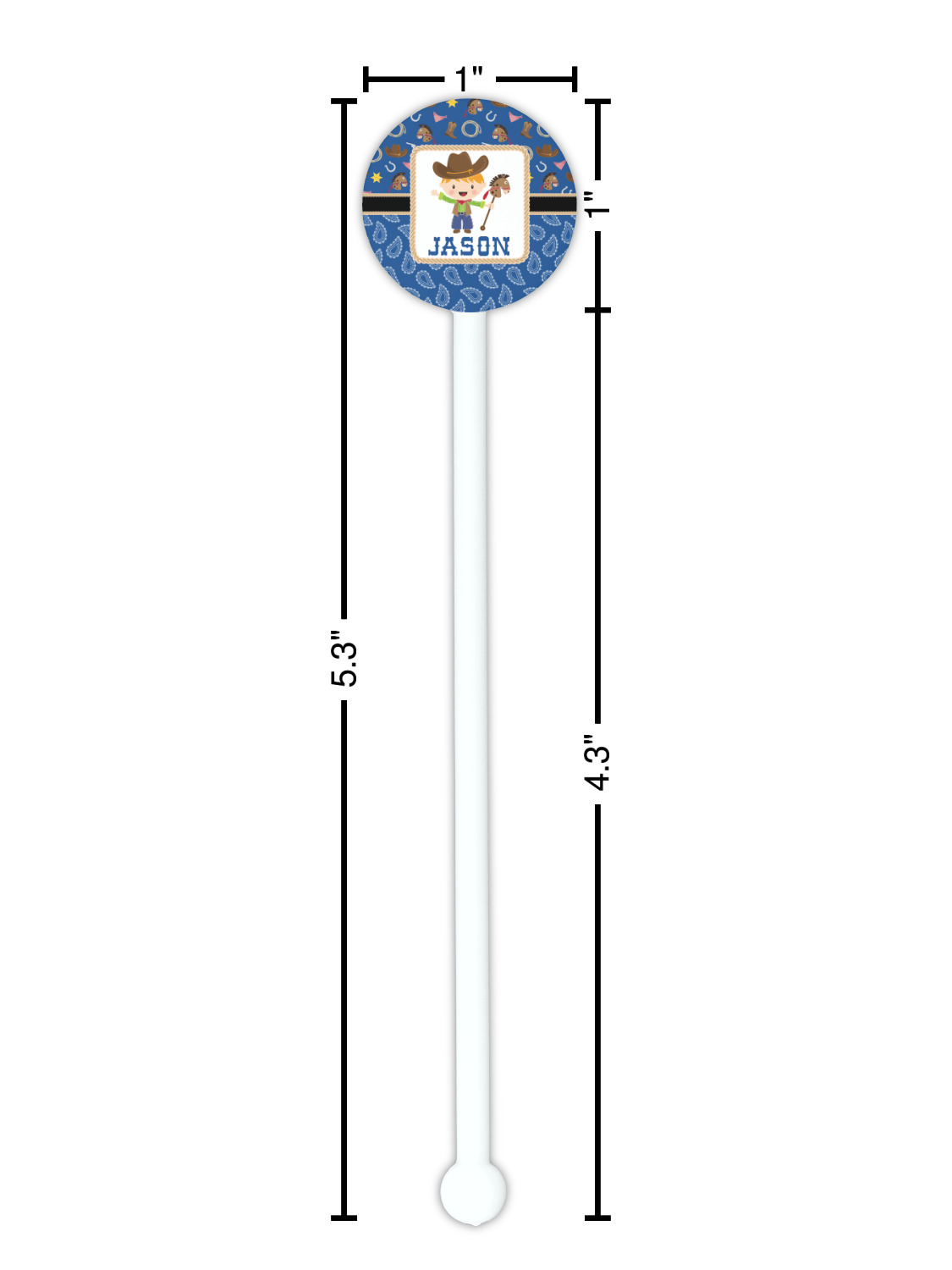 Horseshoe Designs for 5.5" Round Plastic Stir Sticks - White - Single-Sided