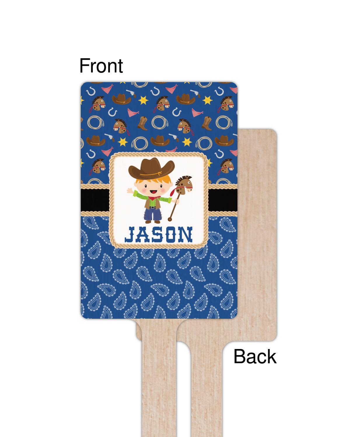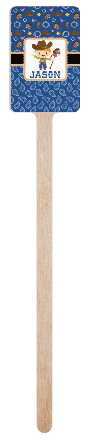 A square label showcasing our cute little cowboy holding his lasso has your little one dreaming of being a cowboy on the range one day.