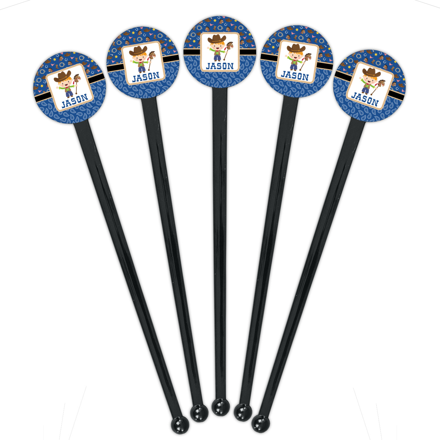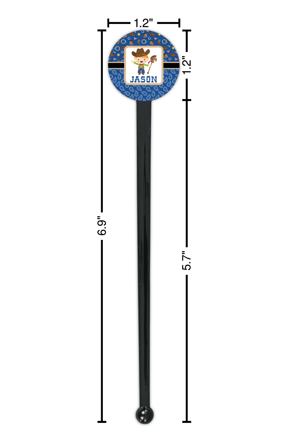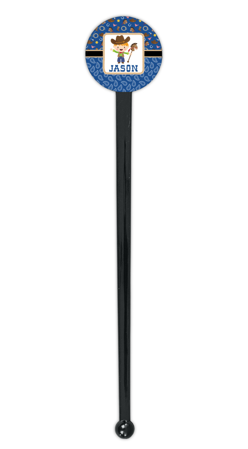 Horseshoe Designs for 7" Round Plastic Stir Sticks - Black - Single-Sided