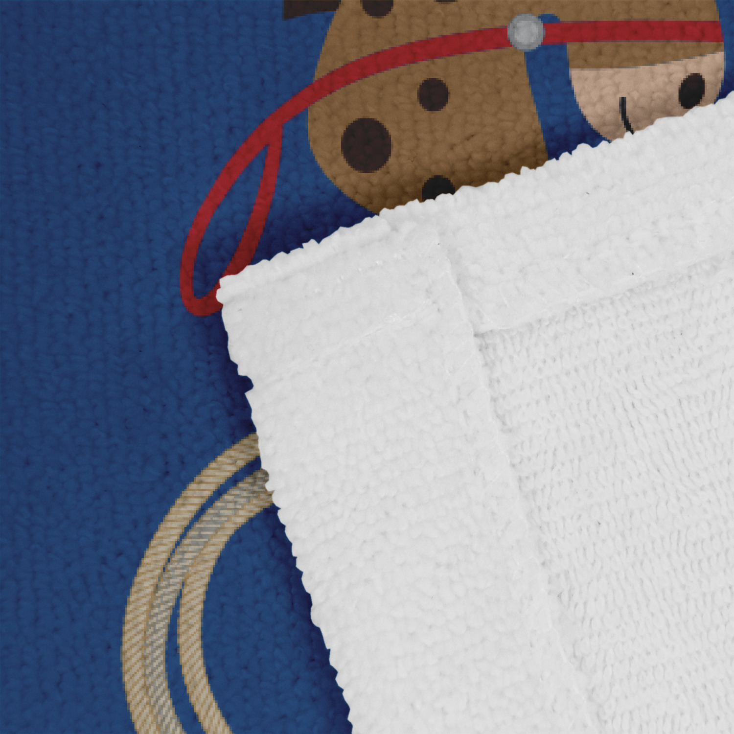 A square label showcasing our cute little cowboy holding his lasso has your little one dreaming of being a cowboy on the range one day.