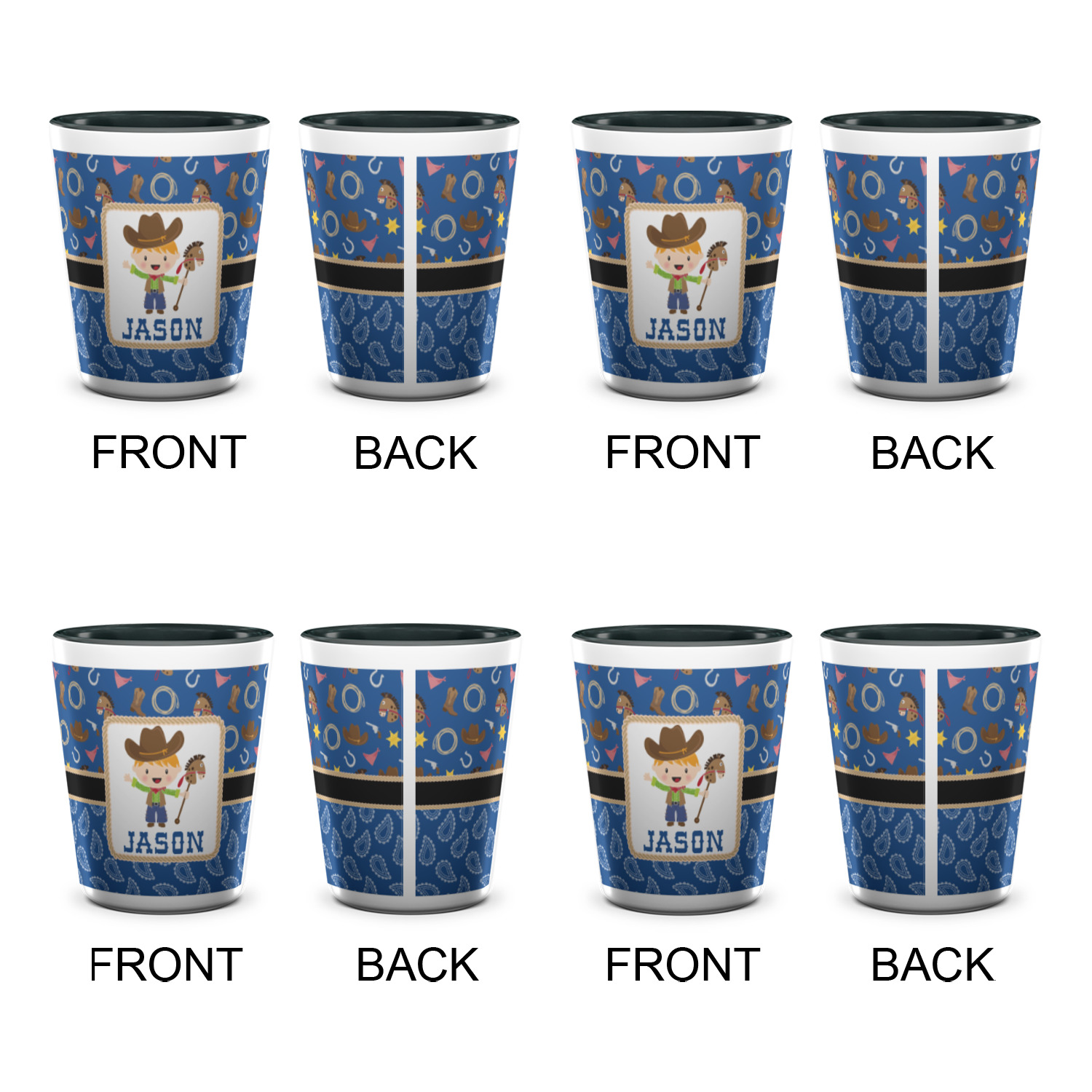 Horseshoe Designs for Ceramic Shot Glasses - 1.5 oz - Two Tone - Set of 4