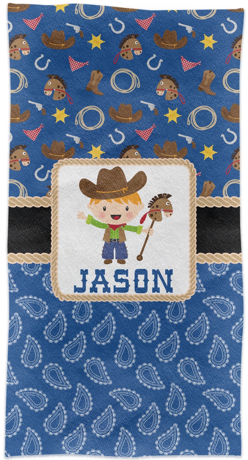 A square label showcasing our cute little cowboy holding his lasso has your little one dreaming of being a cowboy on the range one day.