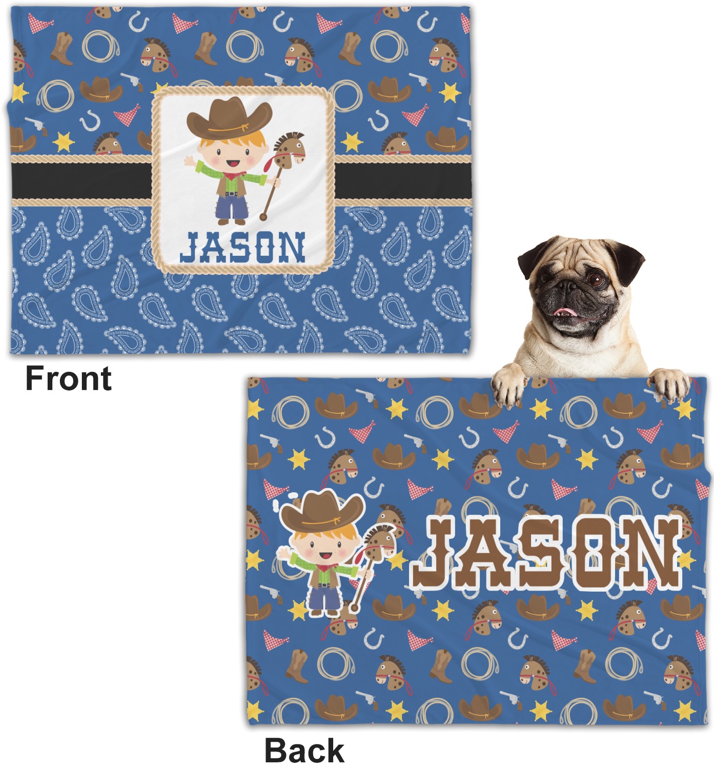 These dog blankets are crafted from a gentle, soft-to-the-touch, minky material. We print your customizations, either matching or differing, on both the top and underside of the blanket. These personalized dog blankets are available in two sizes: regular and large. Our regular size, at 40" x 30", accommodates small and some medium size dogs. At 60" x 50", our large dog blanket is a better fit for bigger breeds. Though specialized for dogs, these blankets still make a thoughtful gift for your favorite feline, or any other pet in mind!