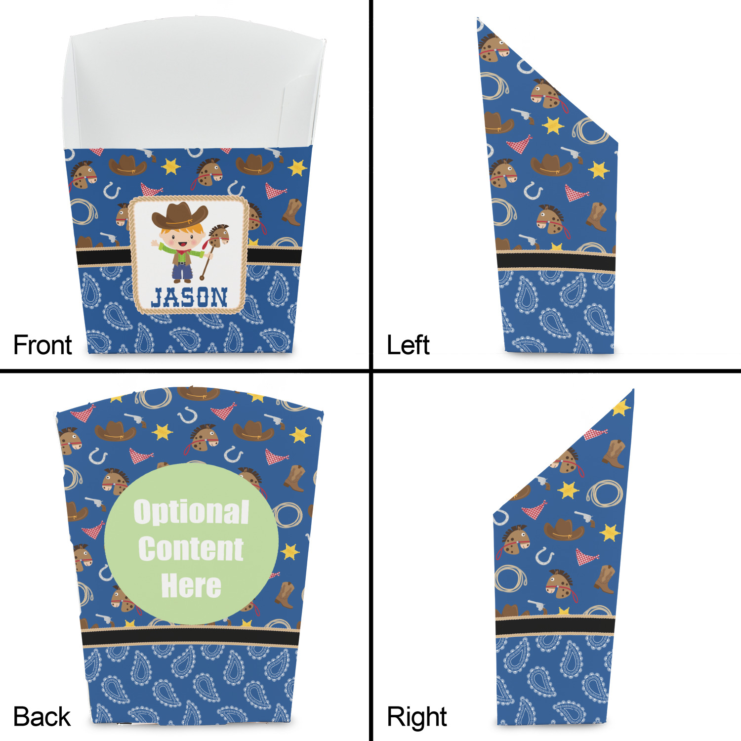 These favor boxes are printed in full color on quality cardstock - so coordinating the french fry favor boxes to match your event's themes or colors should be a breeze. You can upload your own design including artwork, logos or photos