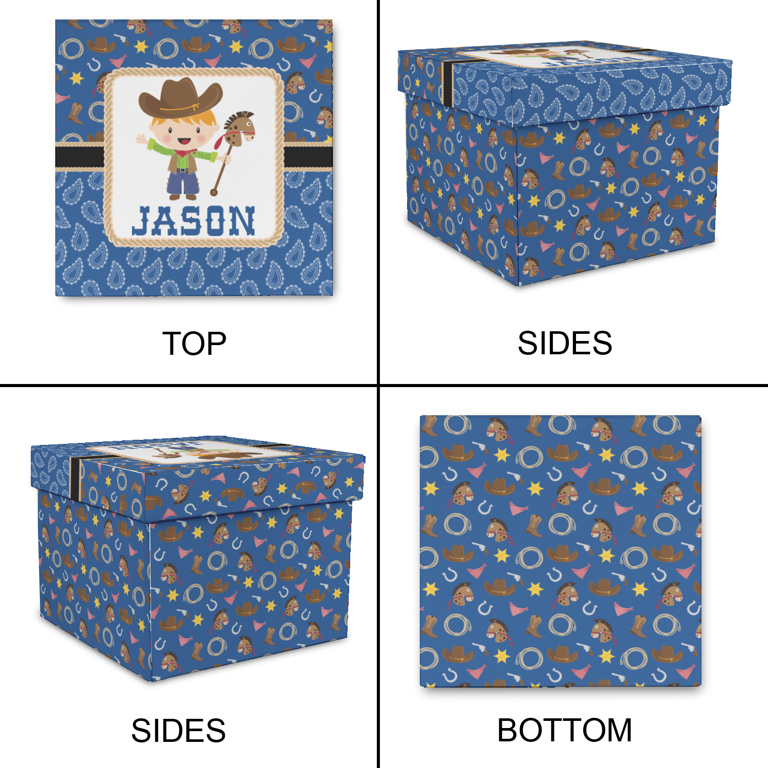 A square label showcasing our cute little cowboy holding his lasso has your little one dreaming of being a cowboy on the range one day.