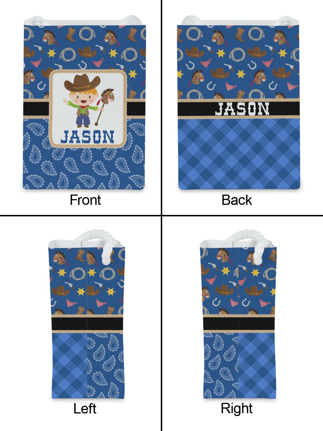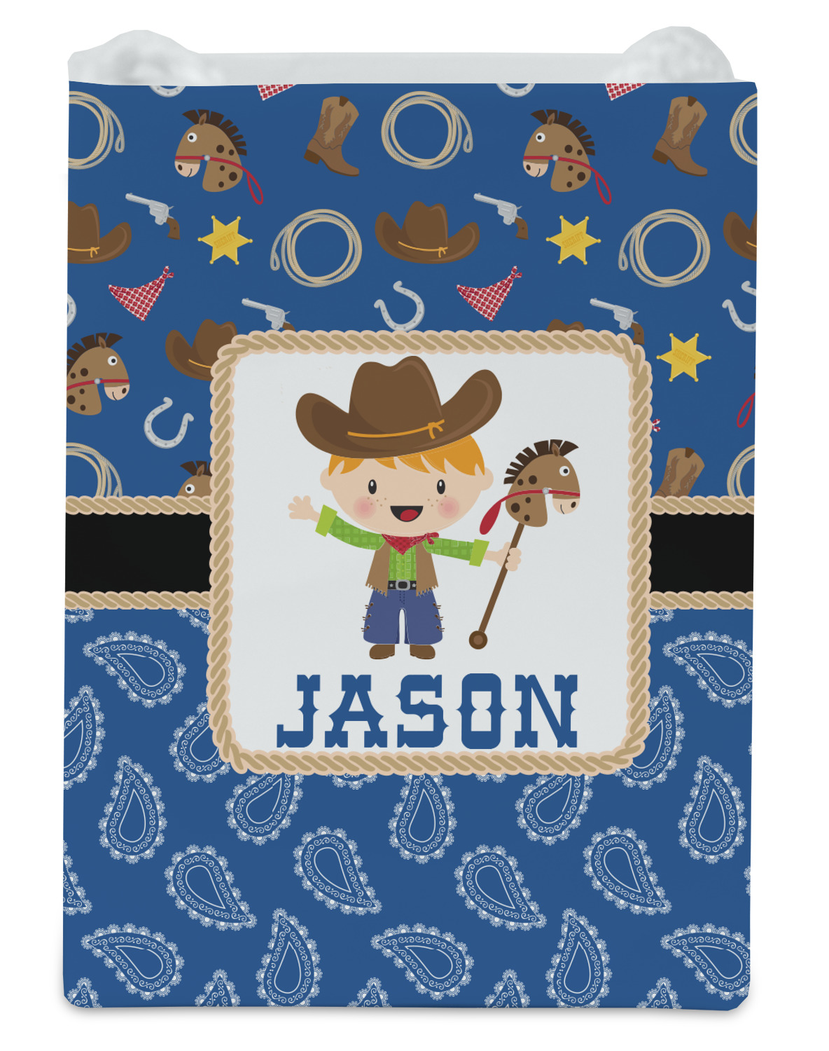 A square label showcasing our cute little cowboy holding his lasso has your little one dreaming of being a cowboy on the range one day.