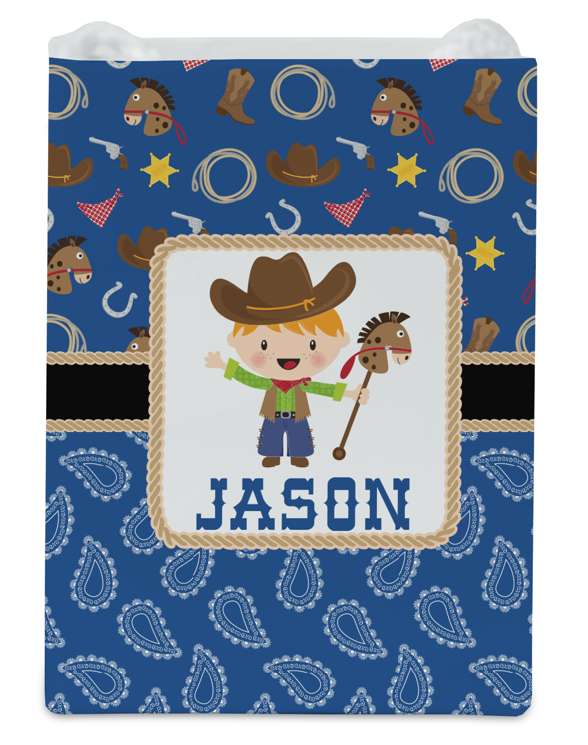 A square label showcasing our cute little cowboy holding his lasso has your little one dreaming of being a cowboy on the range one day.