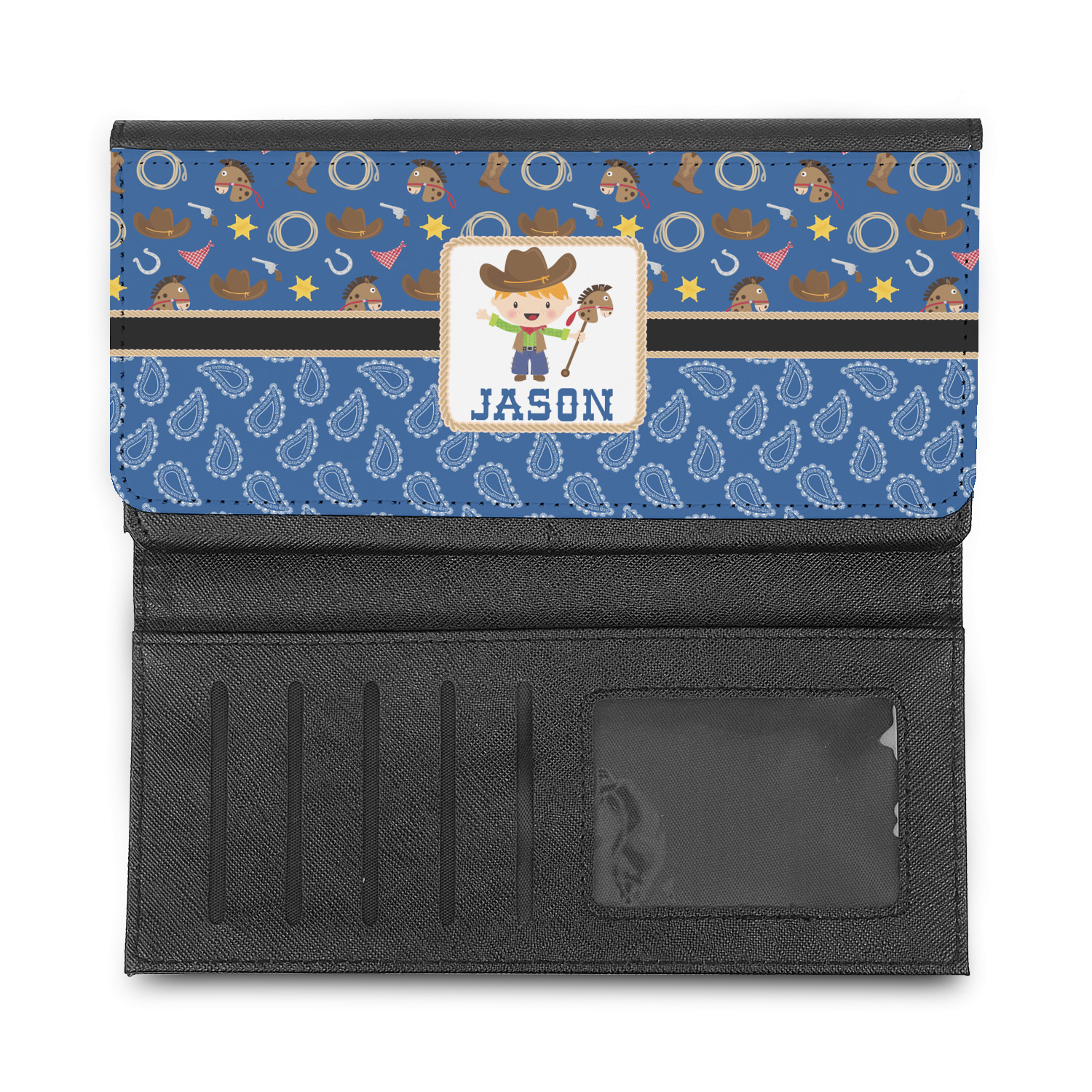 These beautiful wallets are a trifold design. The wallet is made of textured leatherette. The front section has a secure magnetic snap. The front flap is personalized with the artwork of your choice to make this wallet uniquely yours.
