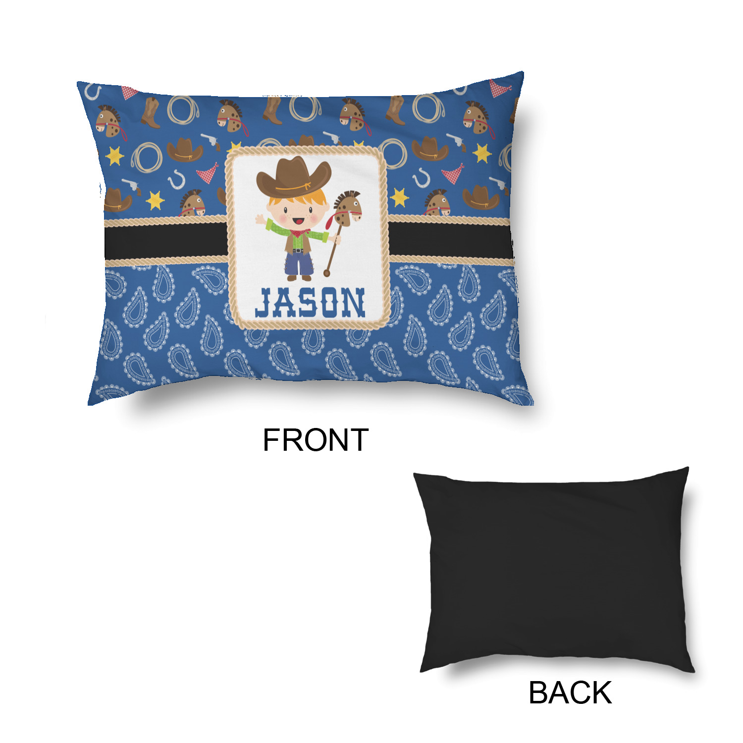 Howdy Y'all! What little country boy wouldn't want to be surrounded by this cute Western theme design? Set on a backdrop of blue, the horses, cowboy boots and hats, rope, guns, Sheriff badges, and bandannas set the scene for a hoedown every day. A coordinating blue paisley pattern on the bottom tie the entire design together. A wide band of red trimmed in rope add that special touch of design.