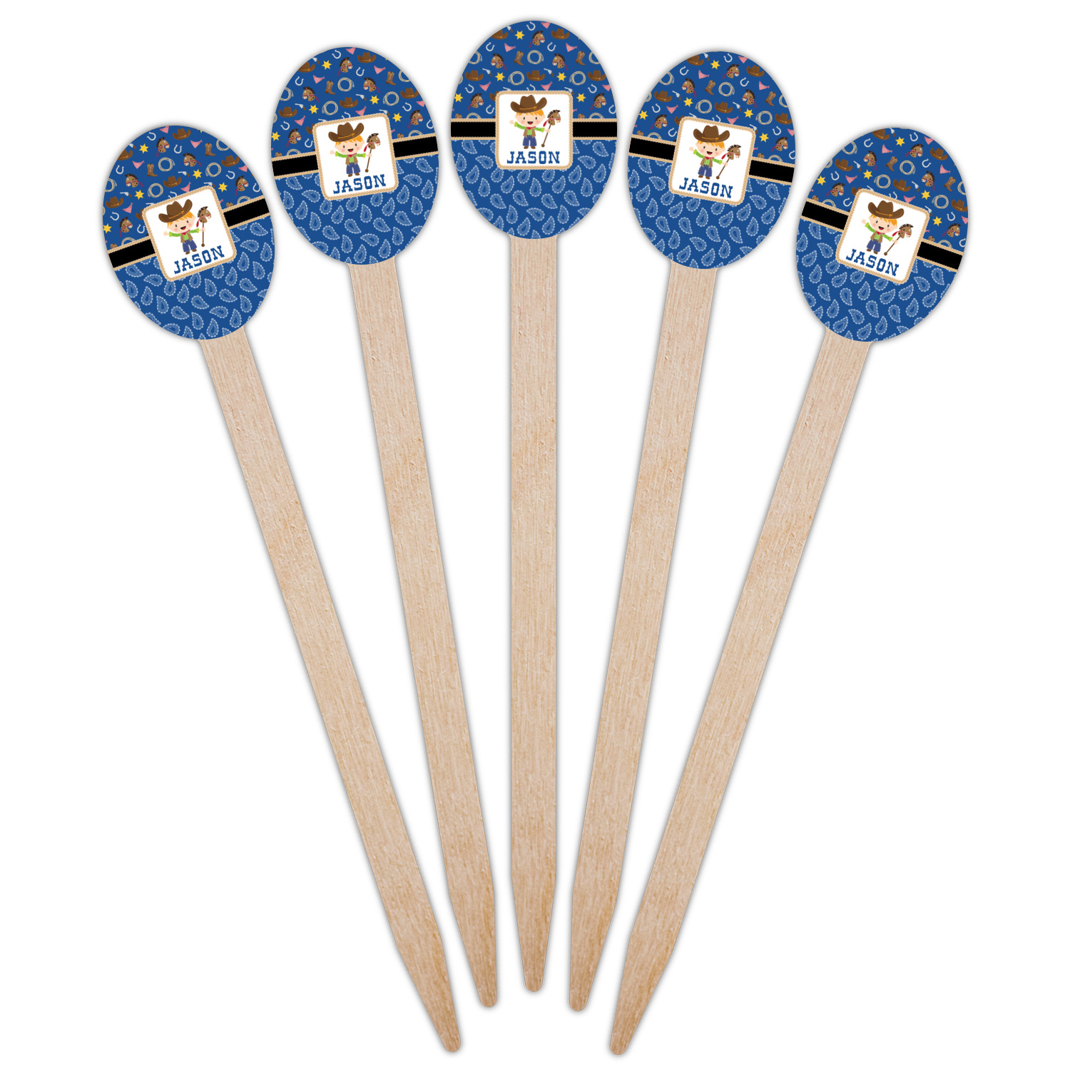 A square label showcasing our cute little cowboy holding his lasso has your little one dreaming of being a cowboy on the range one day.