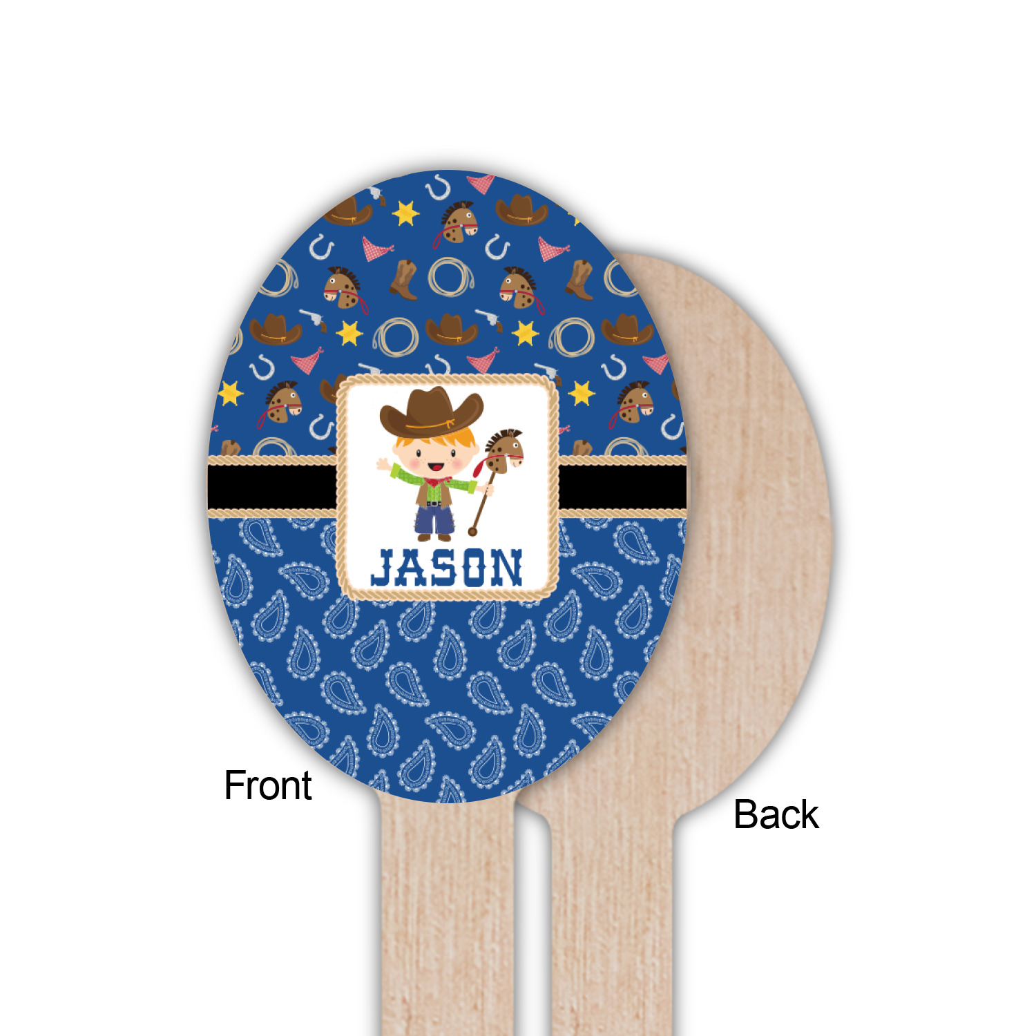 A square label showcasing our cute little cowboy holding his lasso has your little one dreaming of being a cowboy on the range one day.
