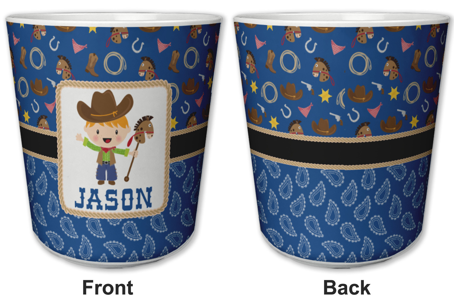 Made from a durable plastic, these tumbler cups are strong enough to withstand daily use and are perfect for young children. Each of these personalized plastic cups holds 6 ounces and measure at approximately 3" x 3" x 3.25". Place them in the bathroom as a rinsing cup, or give them to your kids during mealtimes. These 6 oz. plastic cups are BPA free, microwave and dishwasher safe, for your convenience. Your personalized design is displayed across the entire outside of this cup, while the inside is white in color to make your customization really stand out.