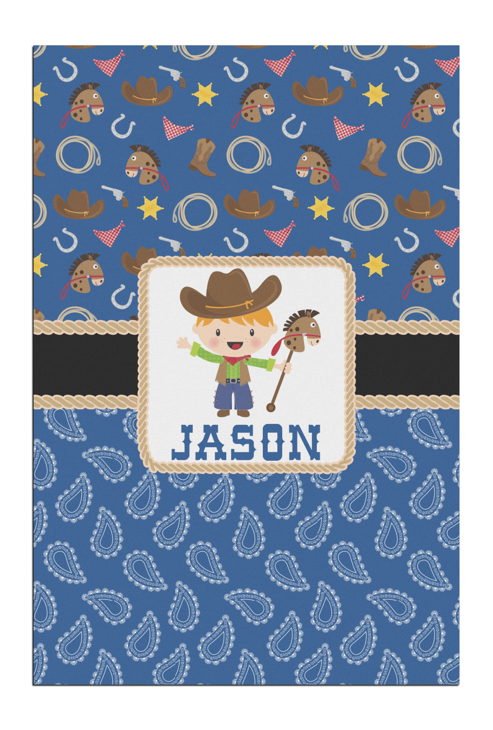 A square label showcasing our cute little cowboy holding his lasso has your little one dreaming of being a cowboy on the range one day.