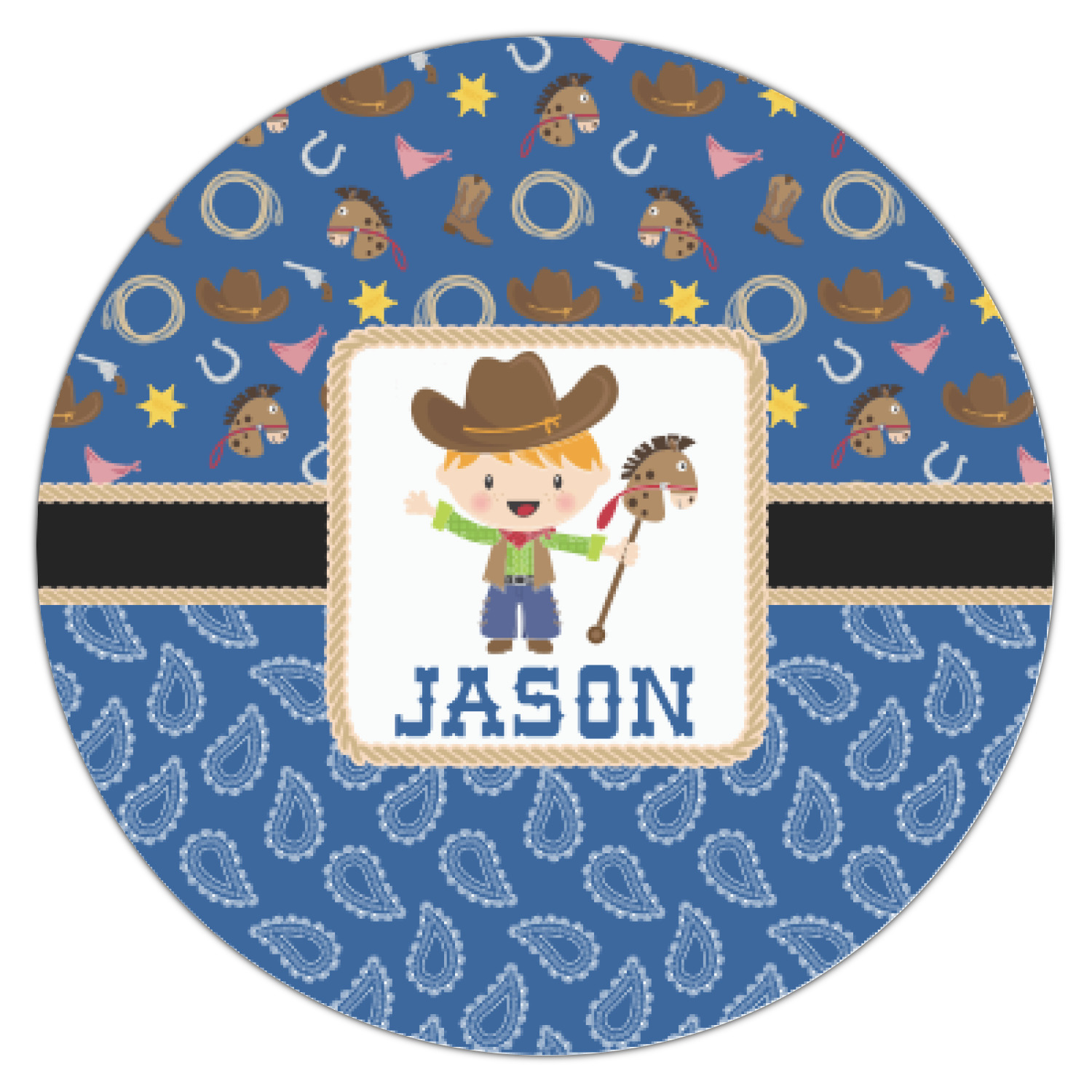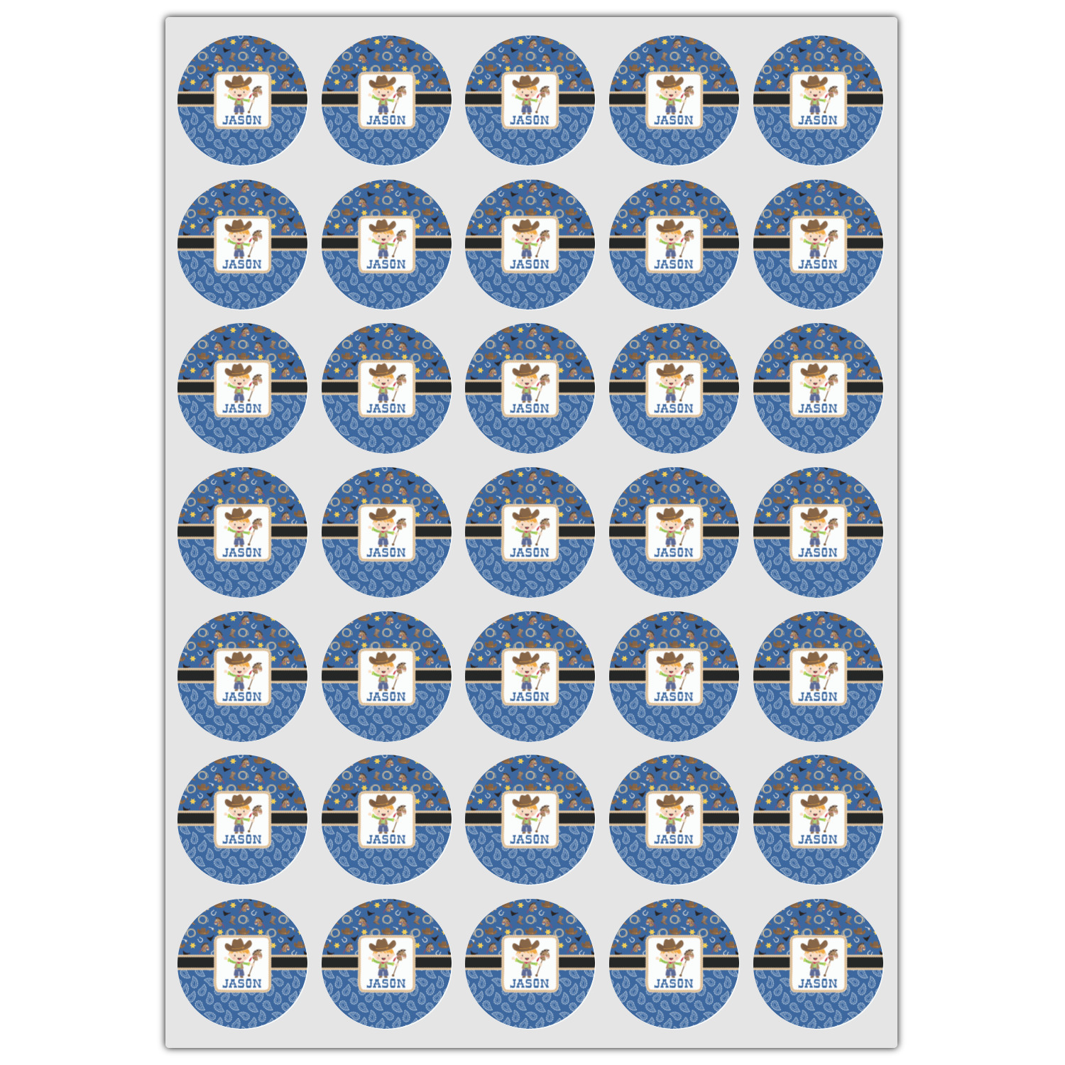 A square label showcasing our cute little cowboy holding his lasso has your little one dreaming of being a cowboy on the range one day.