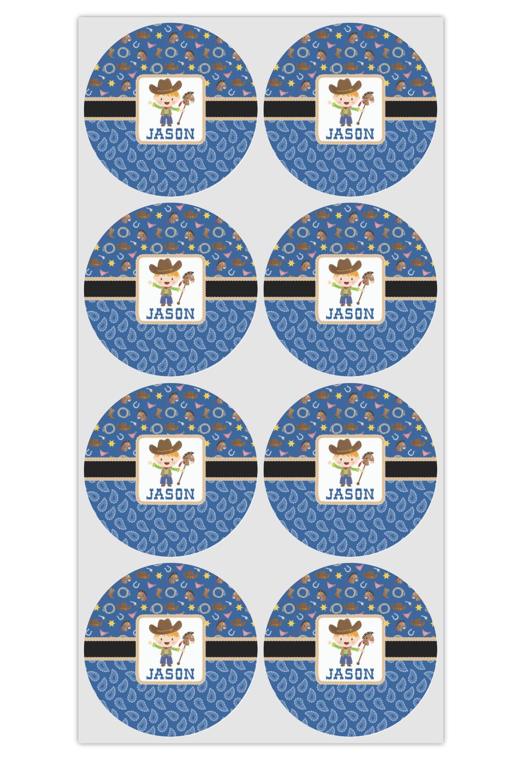 A square label showcasing our cute little cowboy holding his lasso has your little one dreaming of being a cowboy on the range one day.