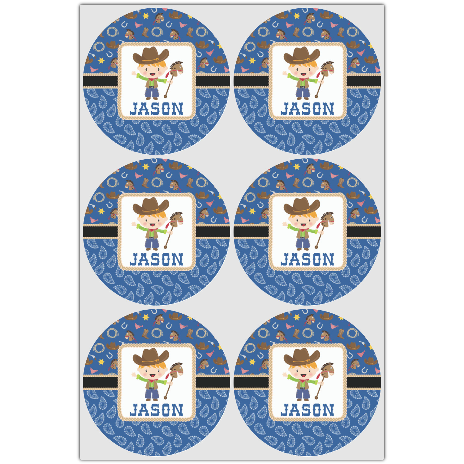 A square label showcasing our cute little cowboy holding his lasso has your little one dreaming of being a cowboy on the range one day.