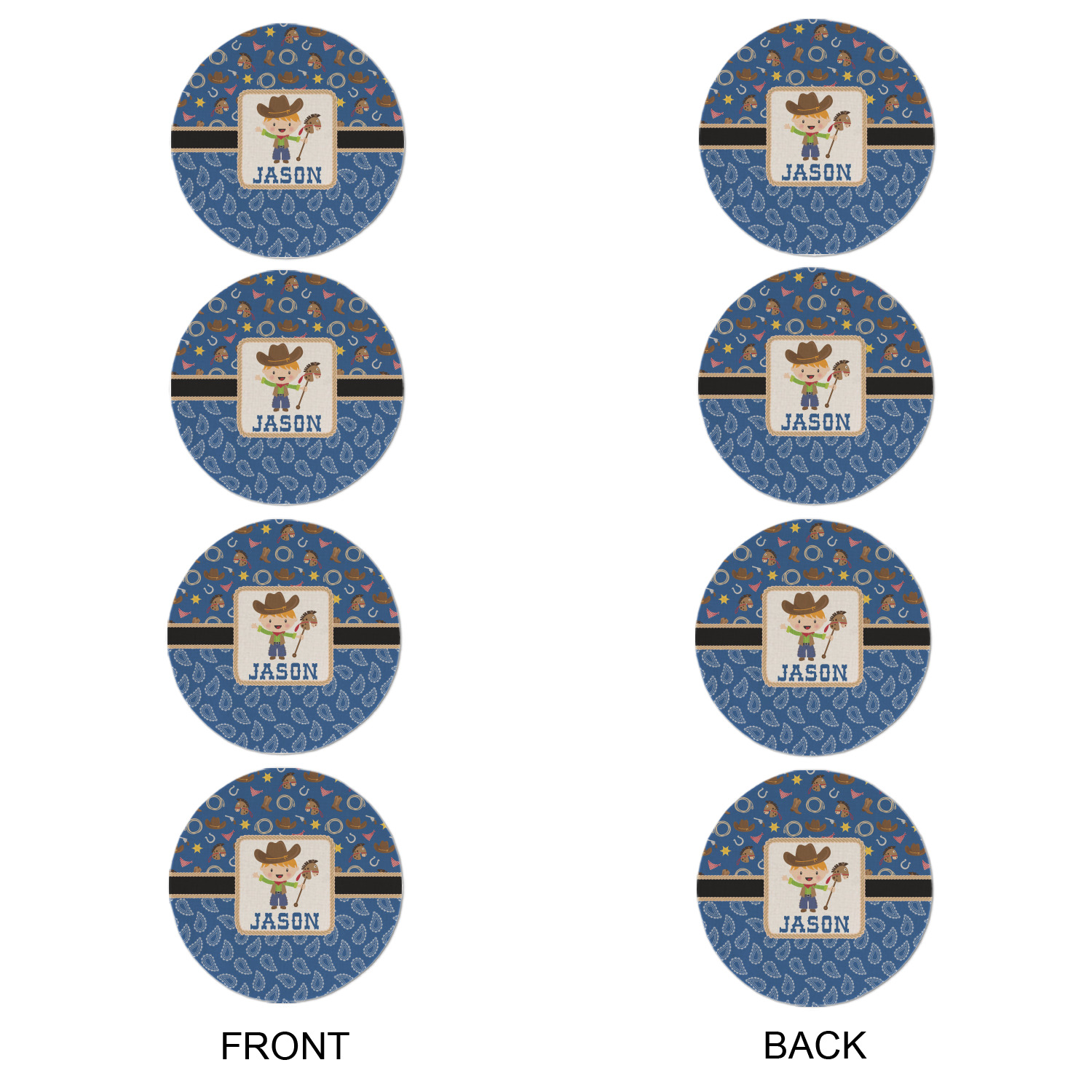 A square label showcasing our cute little cowboy holding his lasso has your little one dreaming of being a cowboy on the range one day.