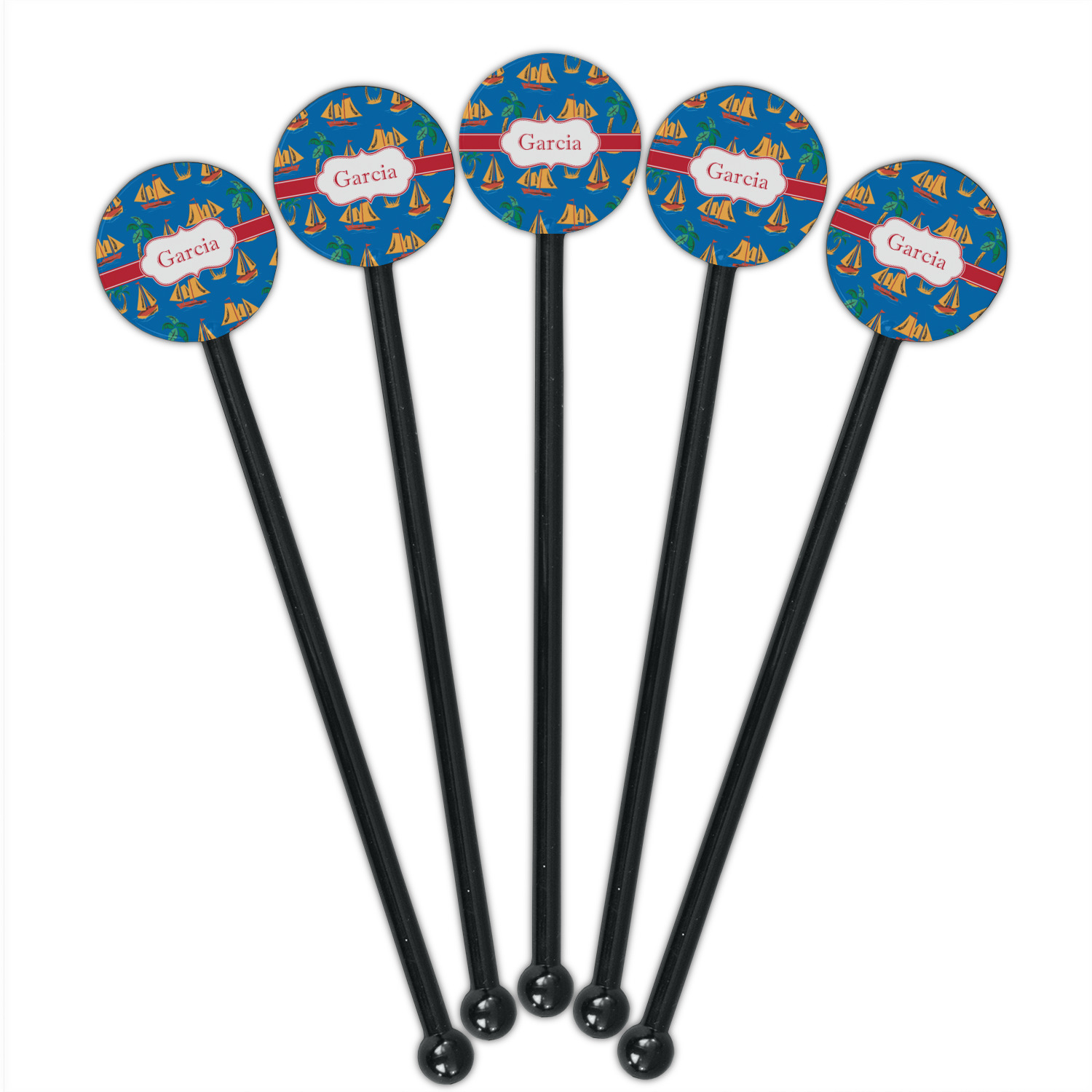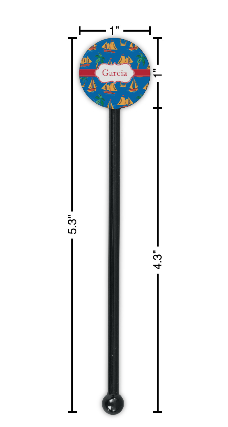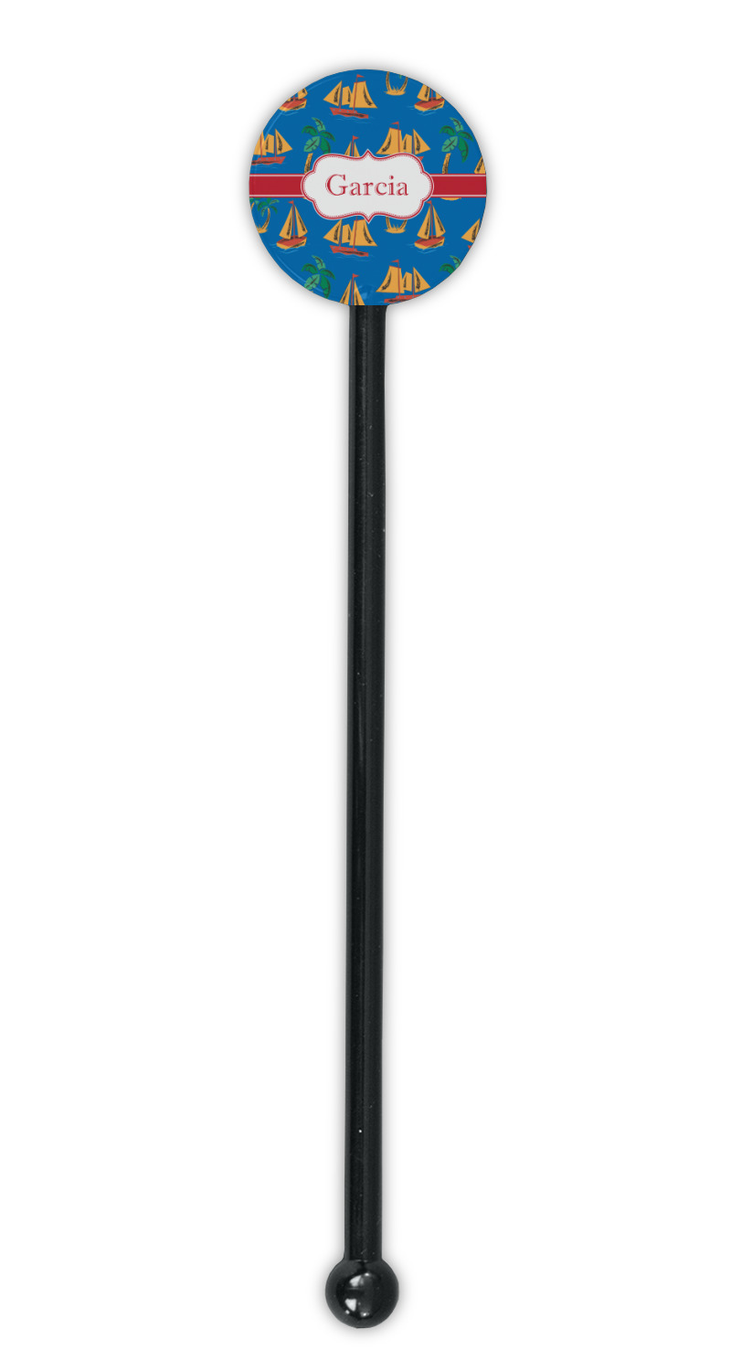 Sailboat Designs for 5.5" Round Plastic Stir Sticks - Black - Single-Sided
