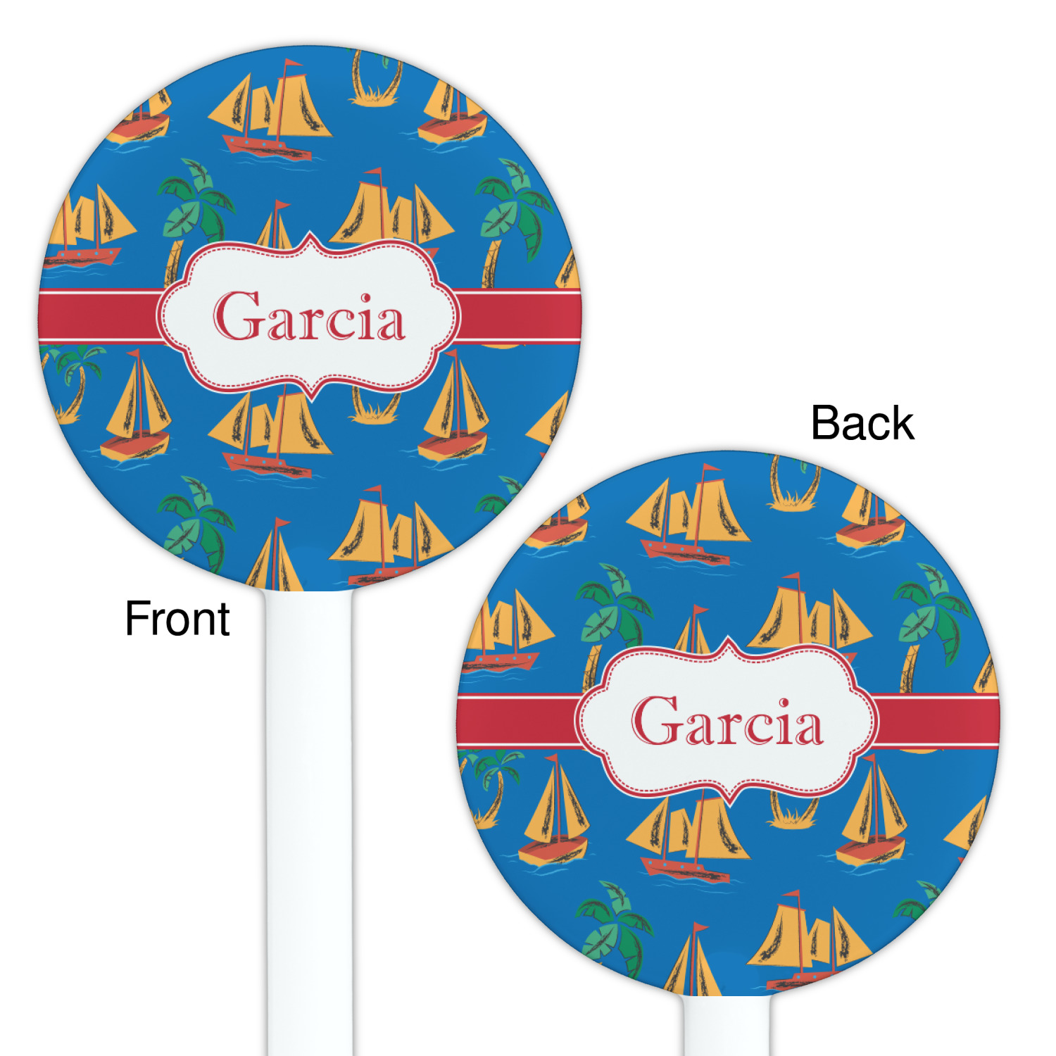 Sailboat Designs for 5.5" Round Plastic Stir Sticks - White - Double-Sided