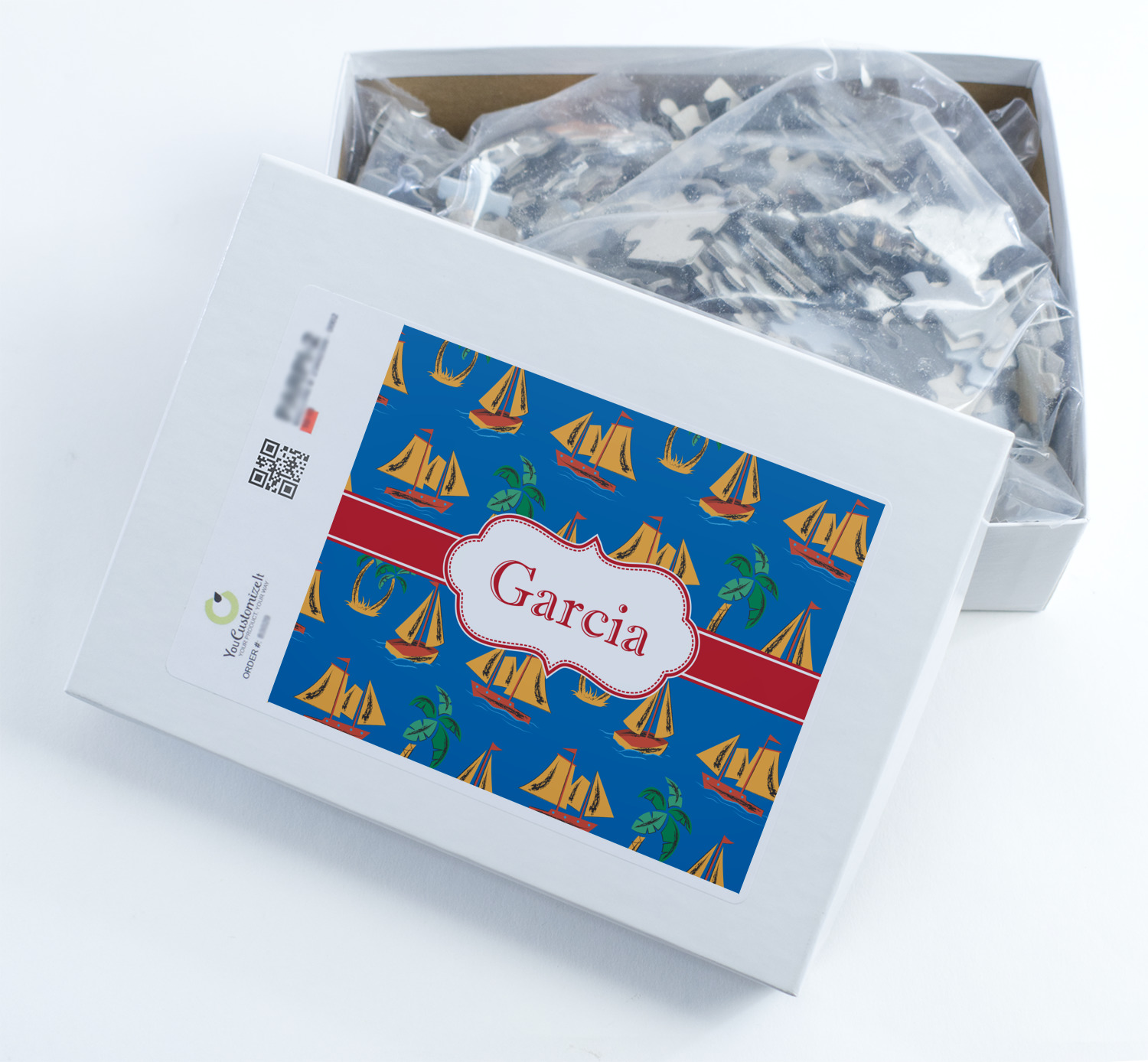 You can also upload your logo or art that you or your kids drew. To create more challenging jigsaw puzzles, you can create a pattern from with your logo or artwork. You can also add other elements such as text or personalization.