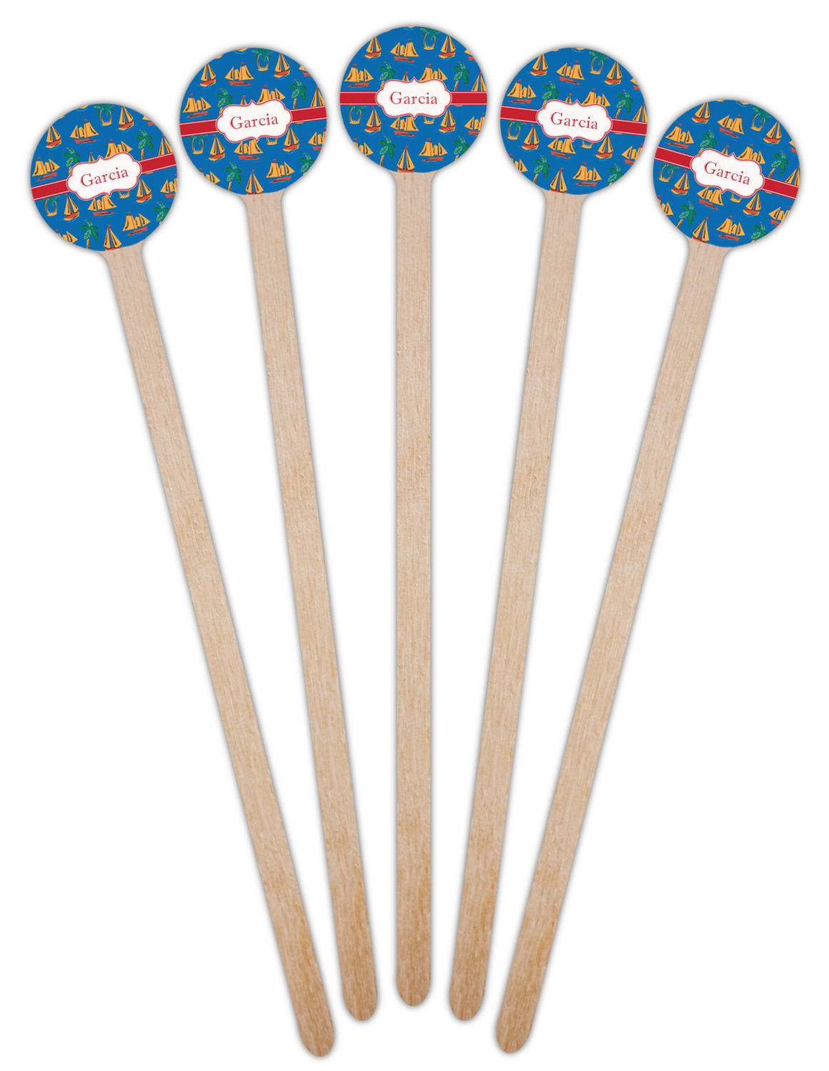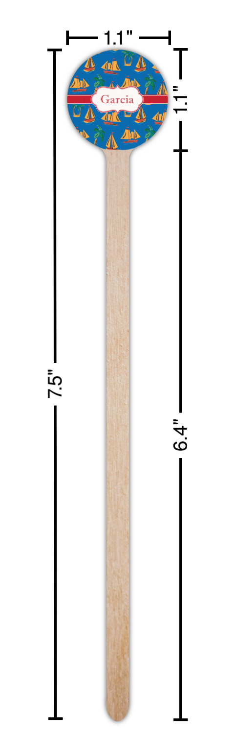 Sailboat Designs for 7.5" Round Wooden Stir Sticks - Single-Sided