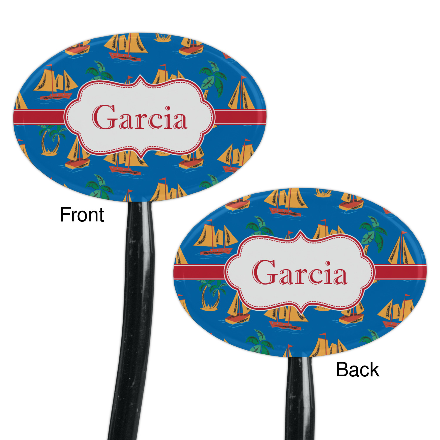 Sailboat Designs for 7" Oval Plastic Stir Sticks - Black - Double-Sided