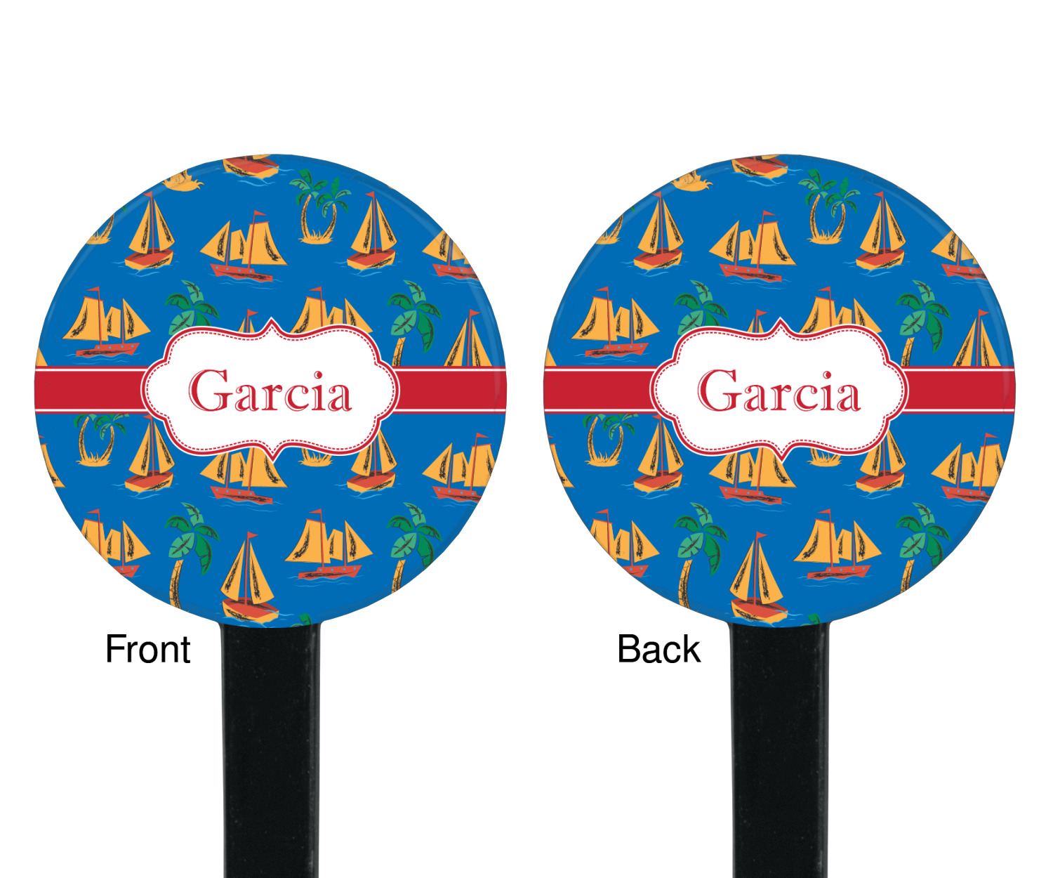 Sailboat Designs for 7" Round Plastic Stir Sticks - Black - Double-Sided