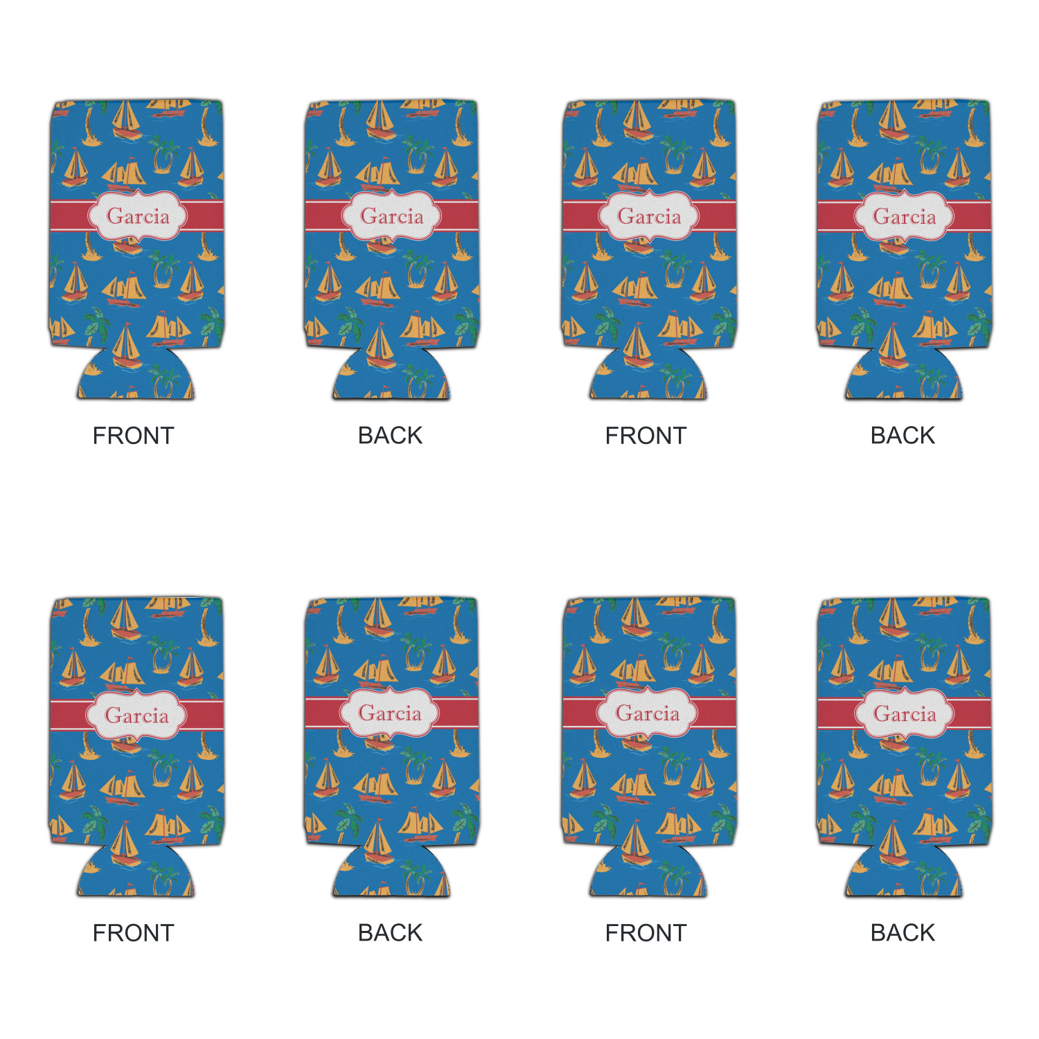 Sailboat Designs for Can Coolers - 16 oz - Set of 4