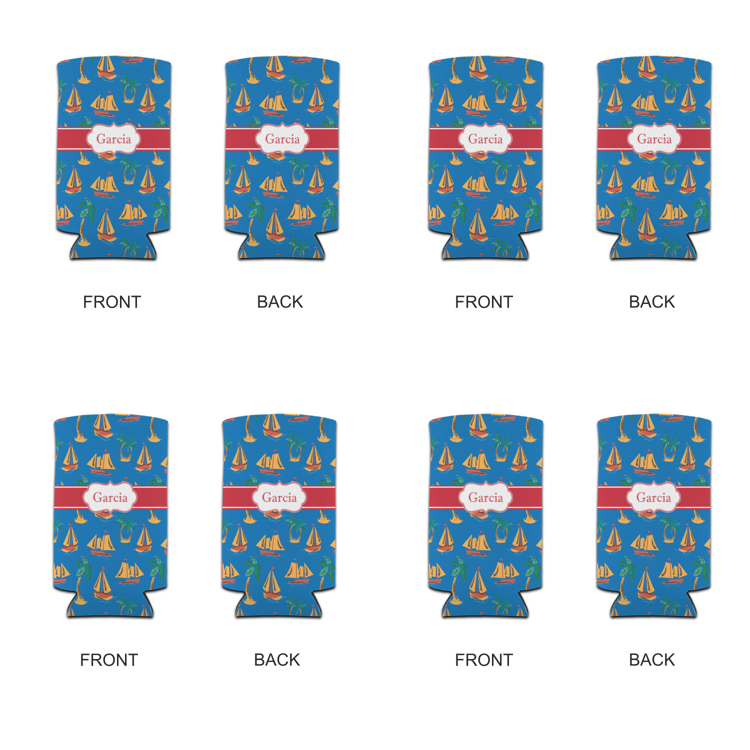 Sailboat Designs for Can Coolers - Tall 12 oz - Set of 4
