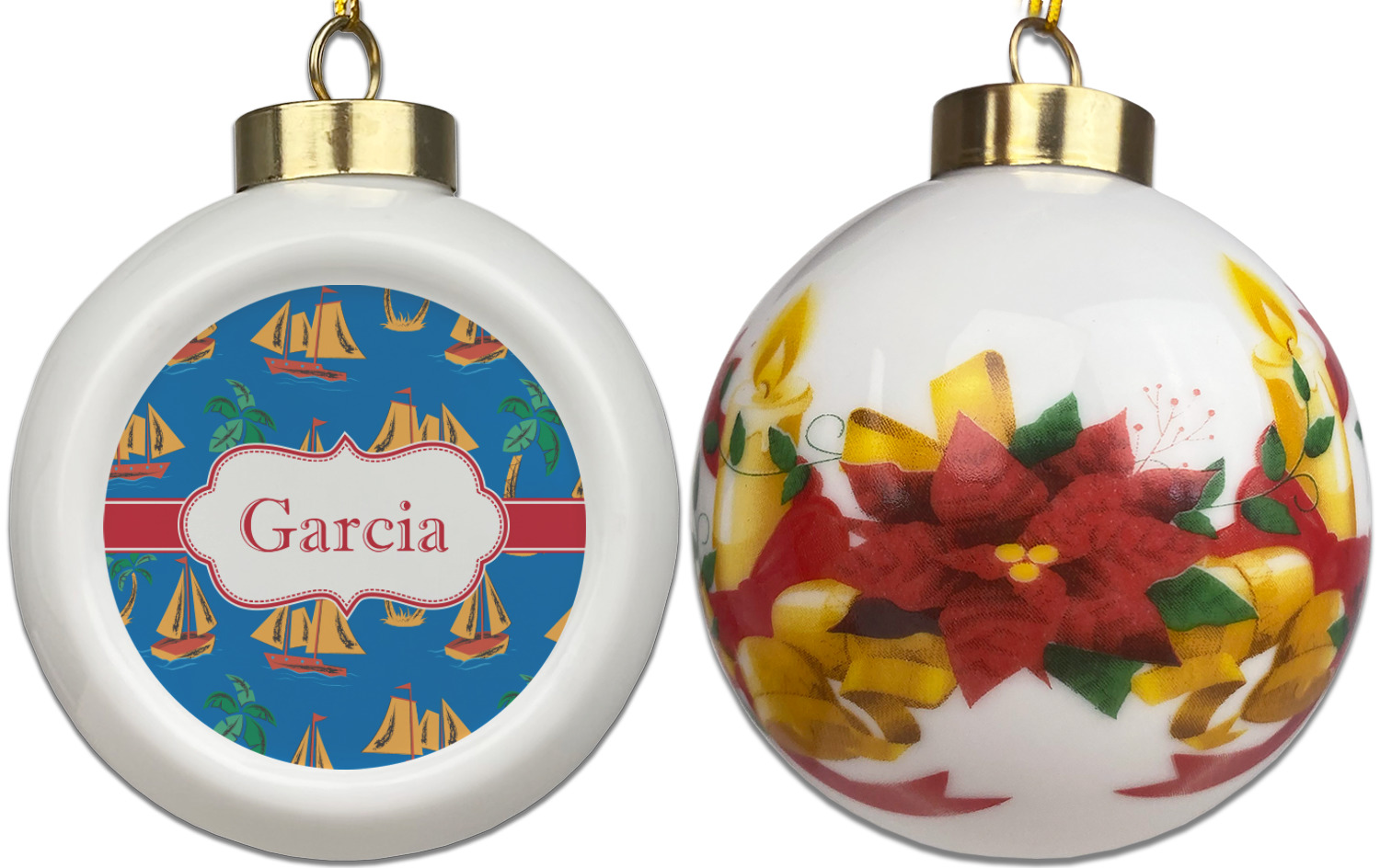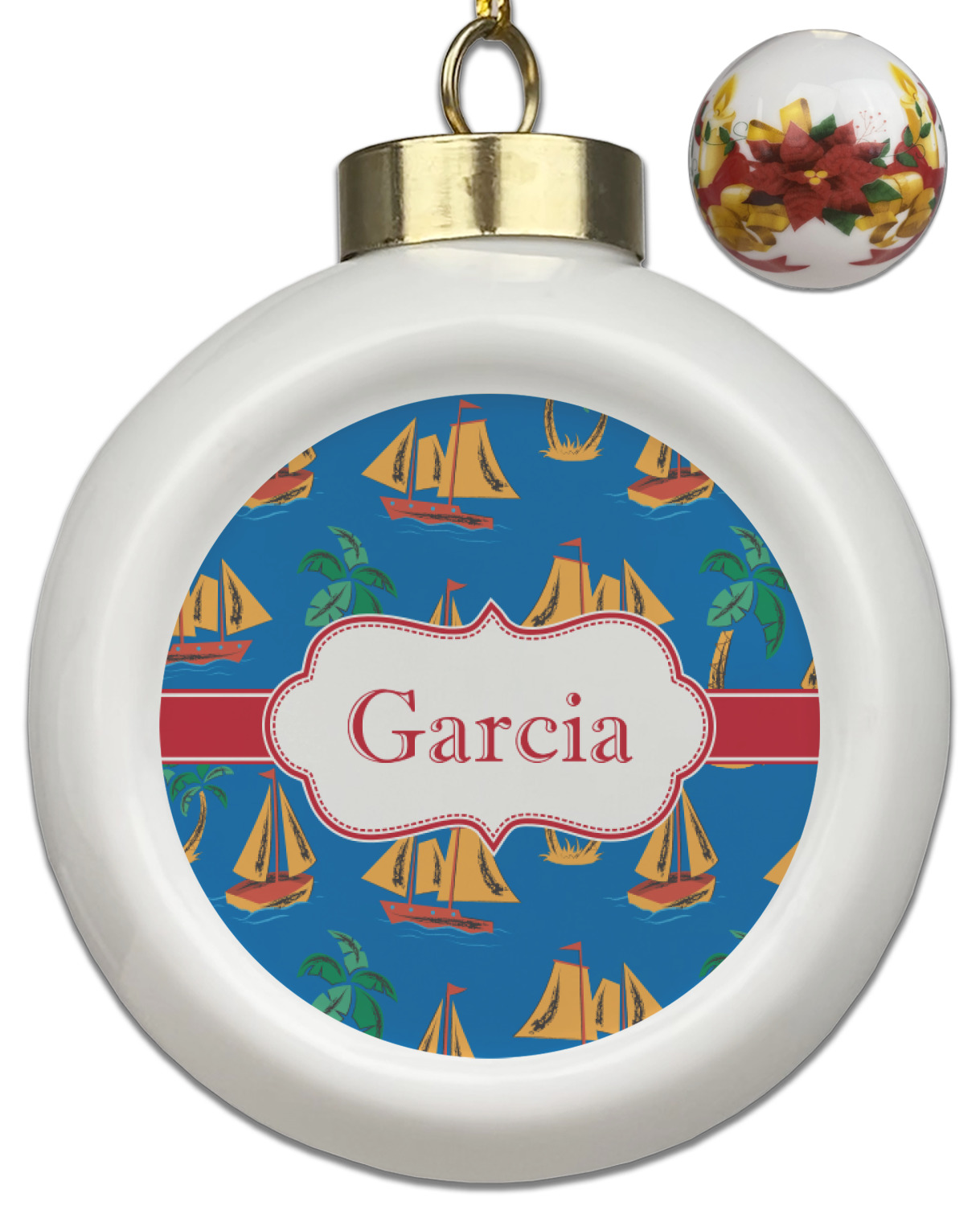 Sailboat Designs for Ceramic Ball Ornaments - Poinsettia Garland