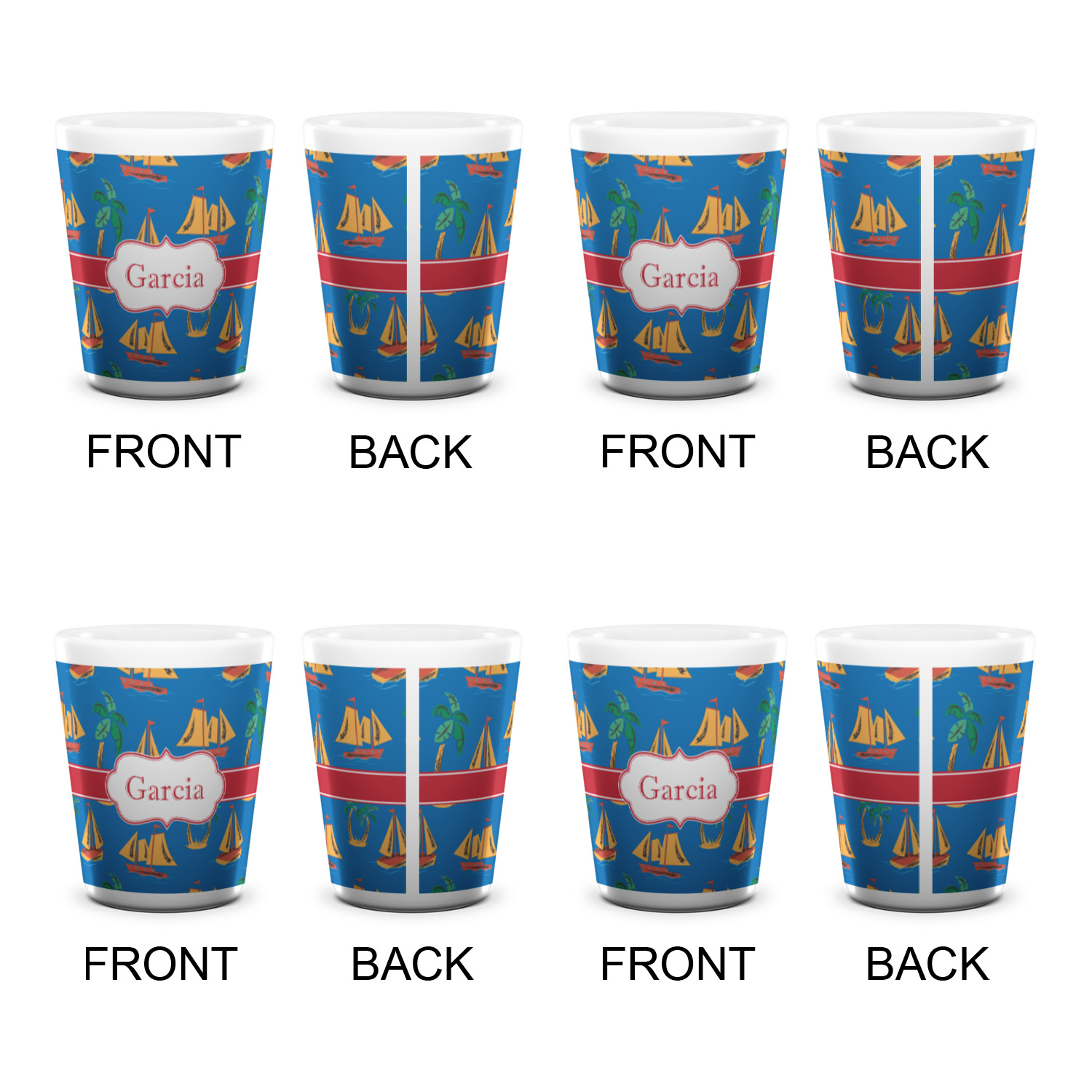Sailboat Designs for Ceramic Shot Glasses - 1.5 oz - White - Set of 4