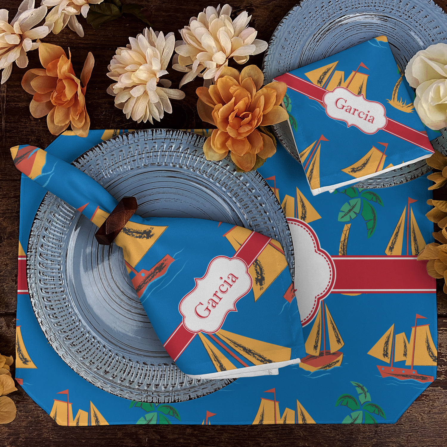 Sailboat Designs for Cloth Cocktail Napkins - Set of 4