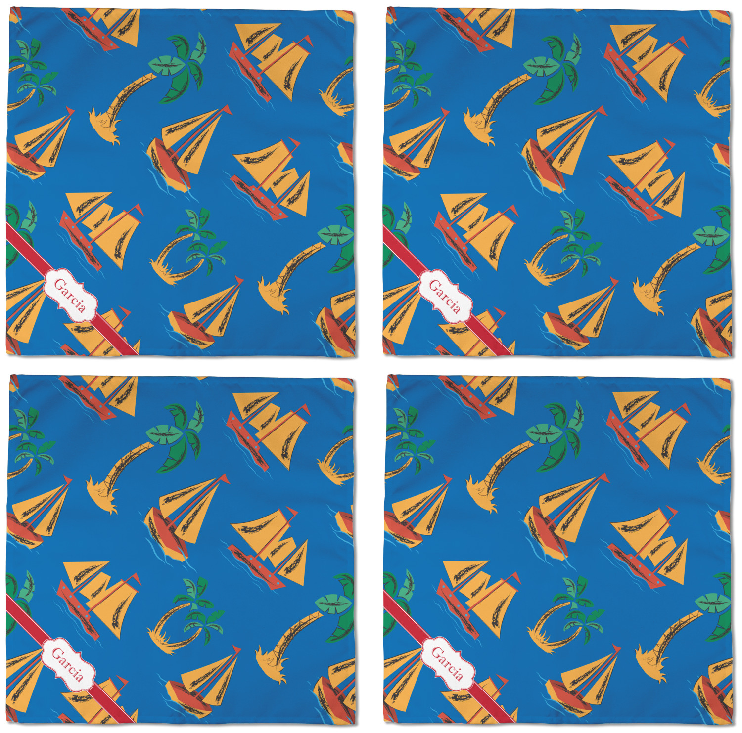 Sailboat Designs for Cloth Dinner Napkins - Set of 4