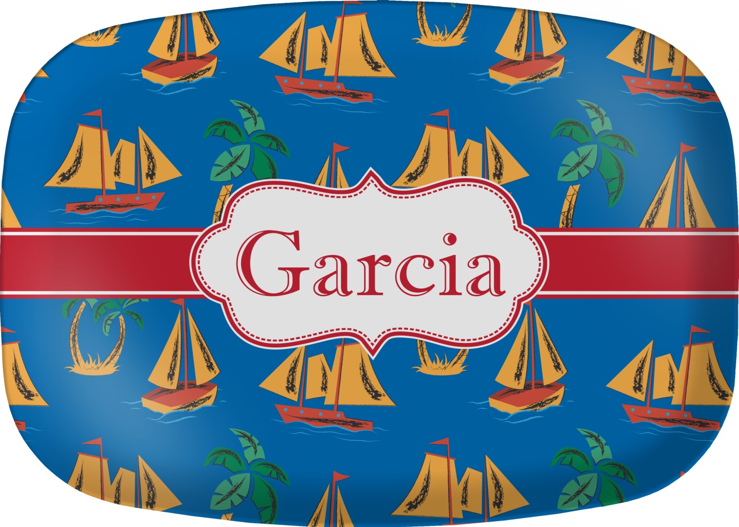 Along with our other melamine plates, these dishes are break and drop resistant. These platters measure at 14" x 10", and is spacious enough to hold your appetizers, snacks, and more! Our melamine dishes are always made with BPA, and are dishwasher safe for your convenience. Your personalization is displayed across the bottom of the platter's inside, and the exterior is a classy, white color.