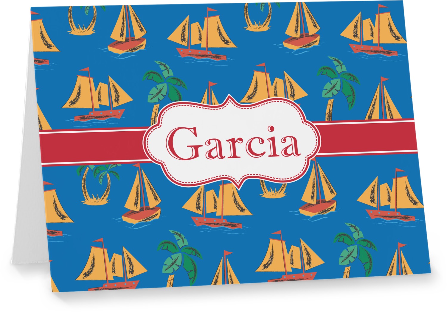 Our custom folded note cards are printed on premium 100lb. card stock and comes with white envelopes. The note card measure 5.5 by 4.25 inches and are blank on the inside for your handwritten message.