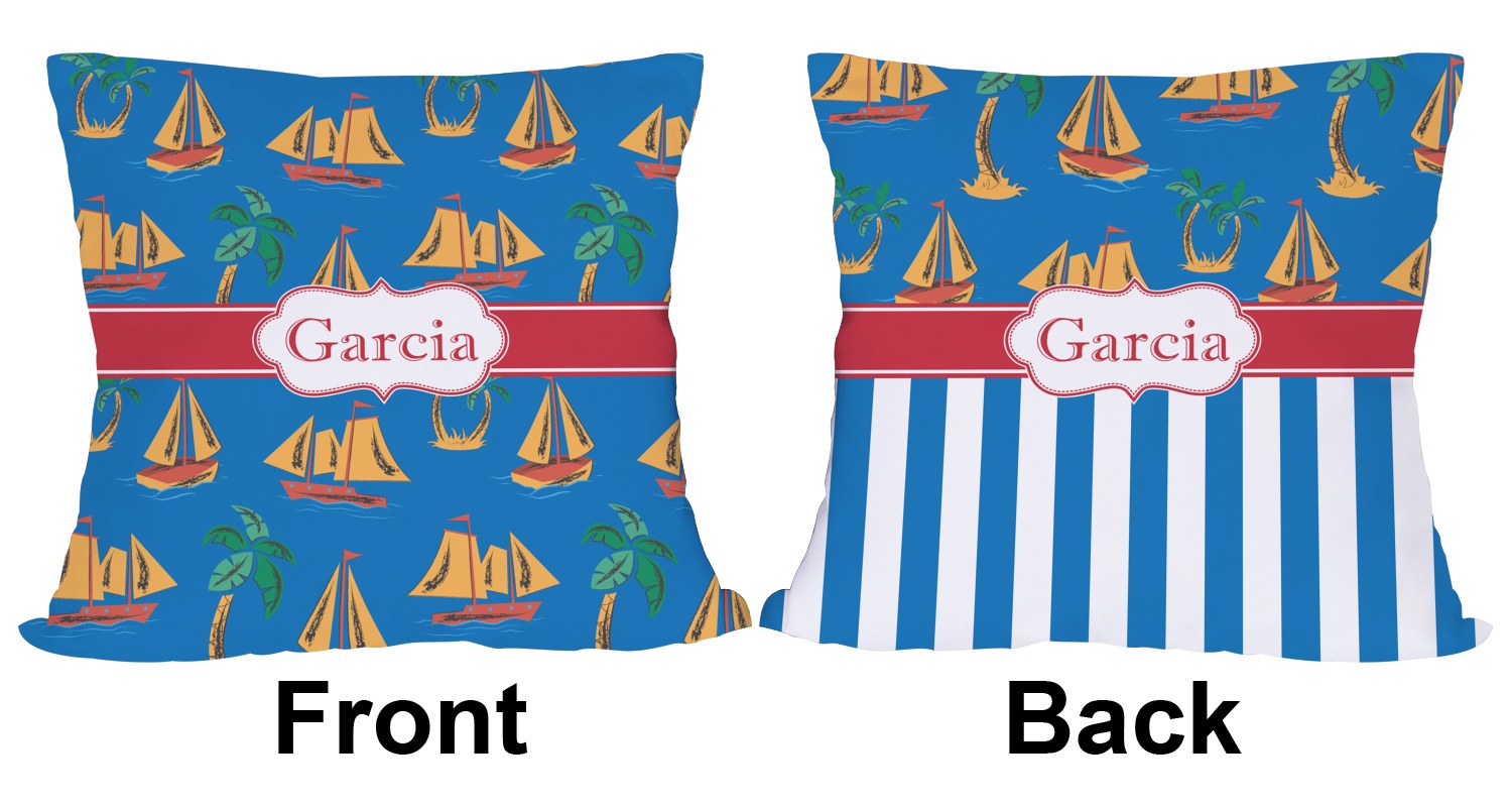 Our outdoor pillows are double sided, and can be customized and personalized in any way you want. You can have two looks with one pillow, where each side is completely different, or you can use a coordinating design - where one side complements the other or you can have them exactly the same - the choice is yours.