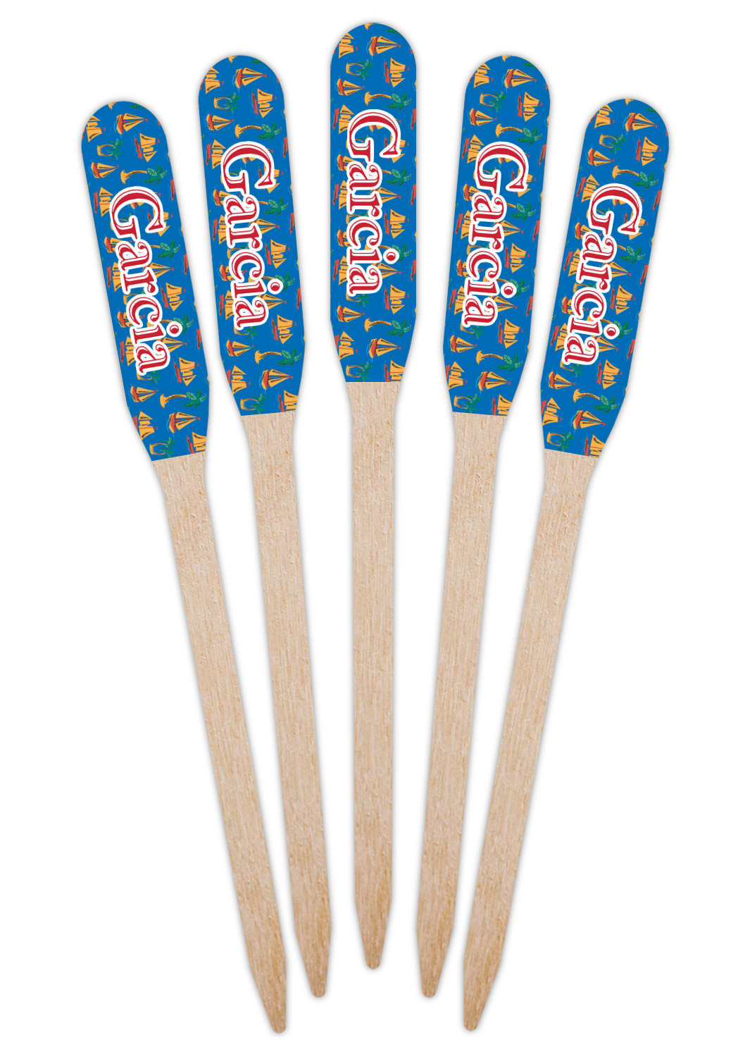 Our paddle style food & drink picks are available in 2 print styles - single sided and double sided.