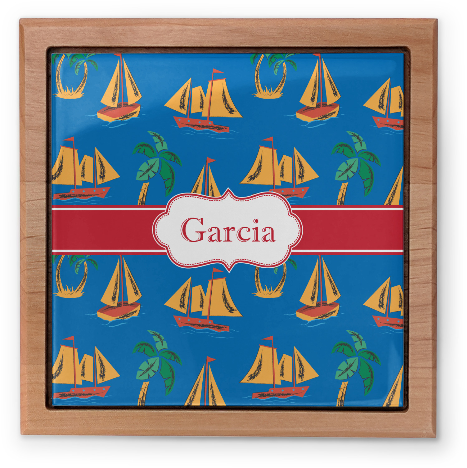 This design combines the beloved Northeastern tradition of summer sailing and a Hawaiian tropical paradise. Get ready for a summer full of adventures with this whimsical design, set on the deep blue sea.