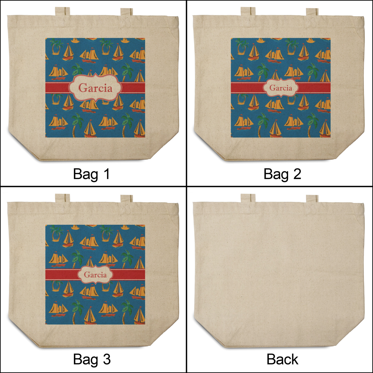 Sailboat Designs for Reusable Cotton Grocery Bags - Set of 3