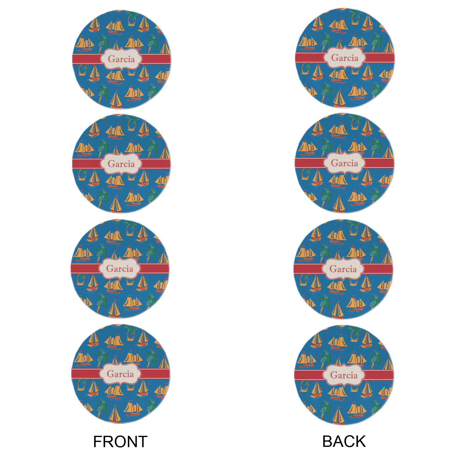 Sailboat Designs for Round Linen Placemats - Double-Sided - Set of 4