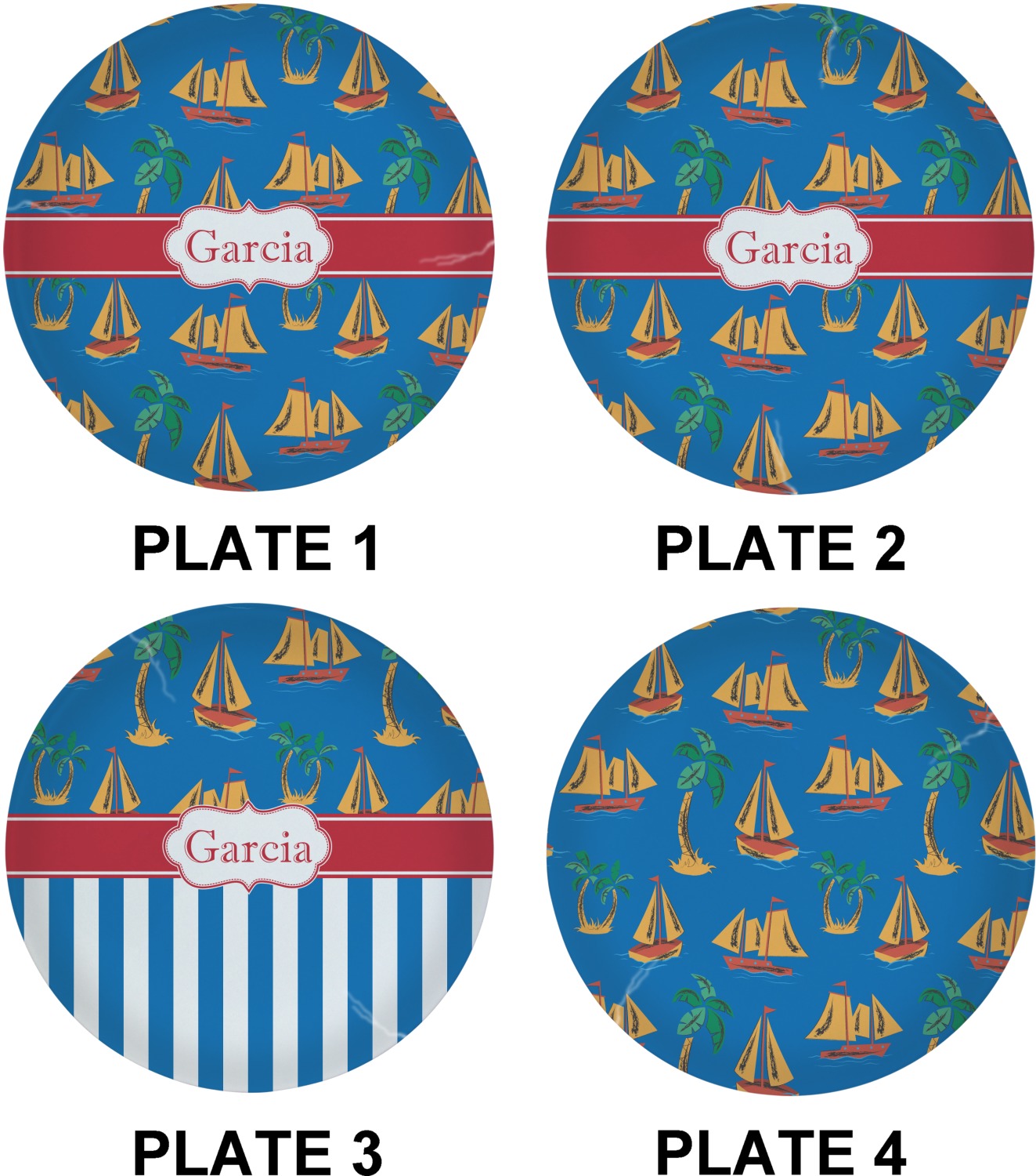 Sailboat Designs for Glass Lunch / Dinner Plates 10" - Set of 4
