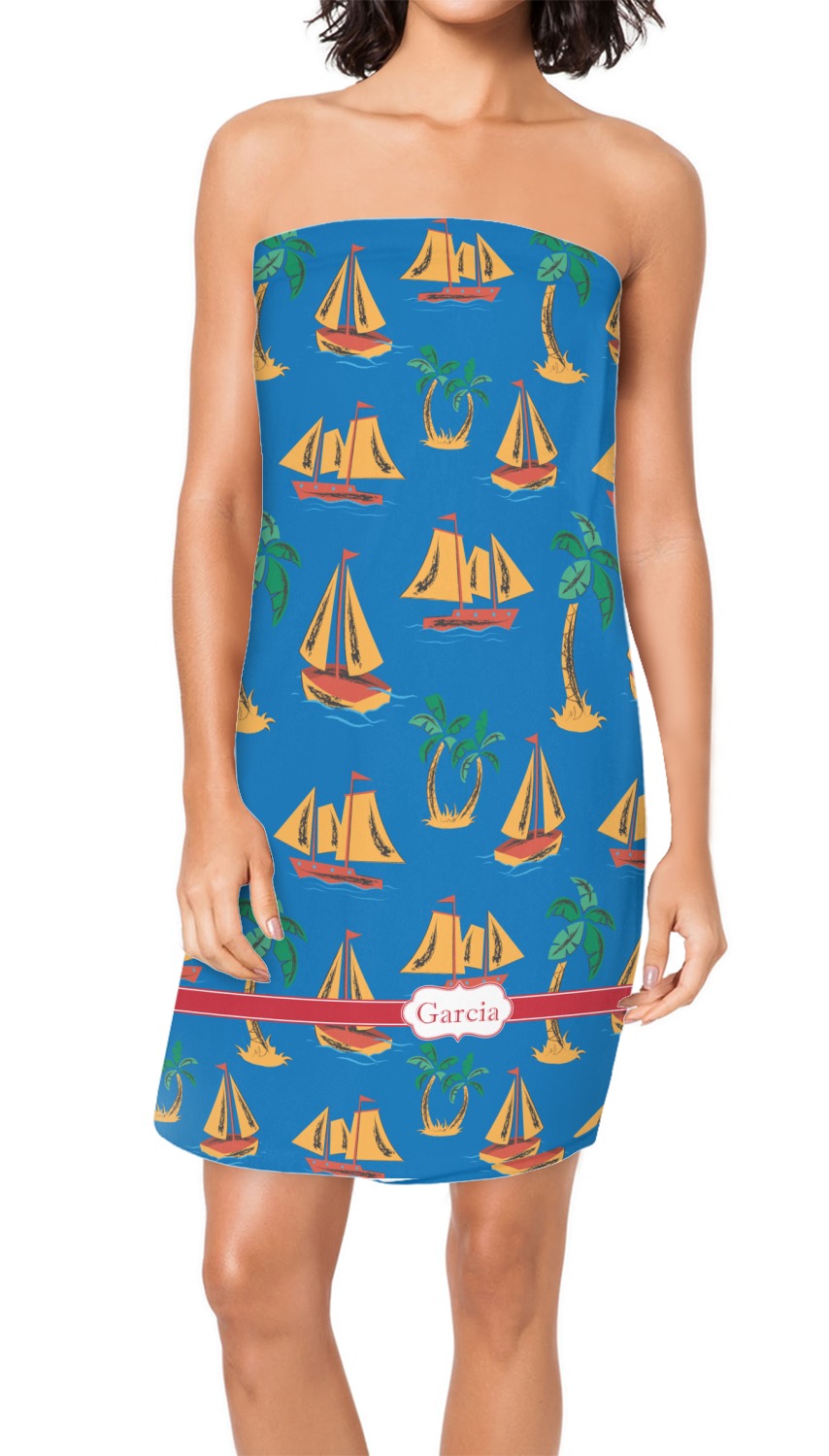 Made from a plush, fleece fabric, these luxurious towel wraps are comfortable and absorbent. They are printed, cut, and sewn for you, right here in the USA, after you place your order. These personalized bath wraps measure at approximately 59 by 32 inches, and display your customization across the outside.