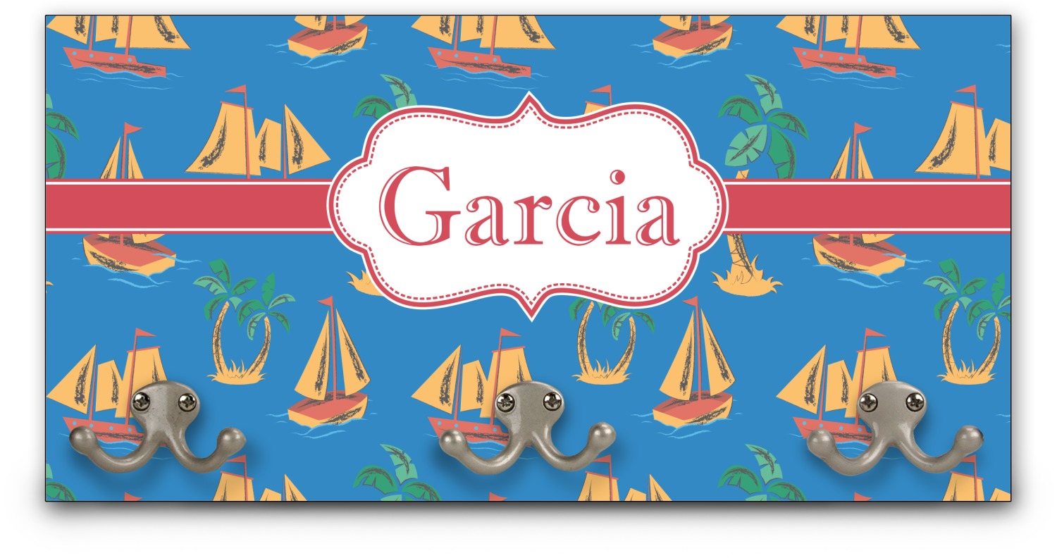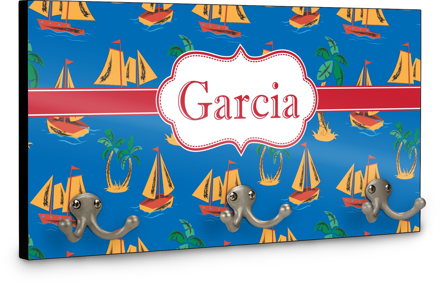 This coat rack is the perfect way to add some personality to your wall or entryway. The board is made of a strong maple that is approximately 16" x 8". The three 2-prong hooks are a sturdy metal that have three screws attaching them to the board. Your design is printed right onto the front of the board while the back and sides are a simple black.