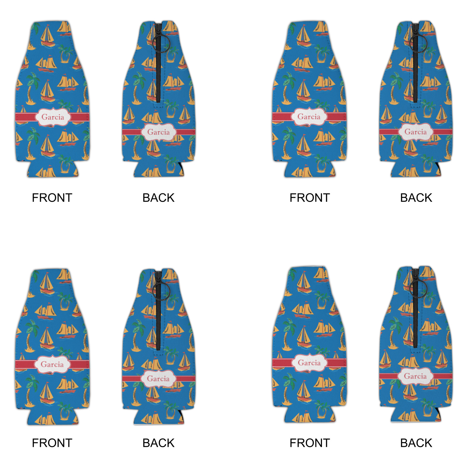 Sailboat Designs for Zipper Bottle Coolers - Set of 4