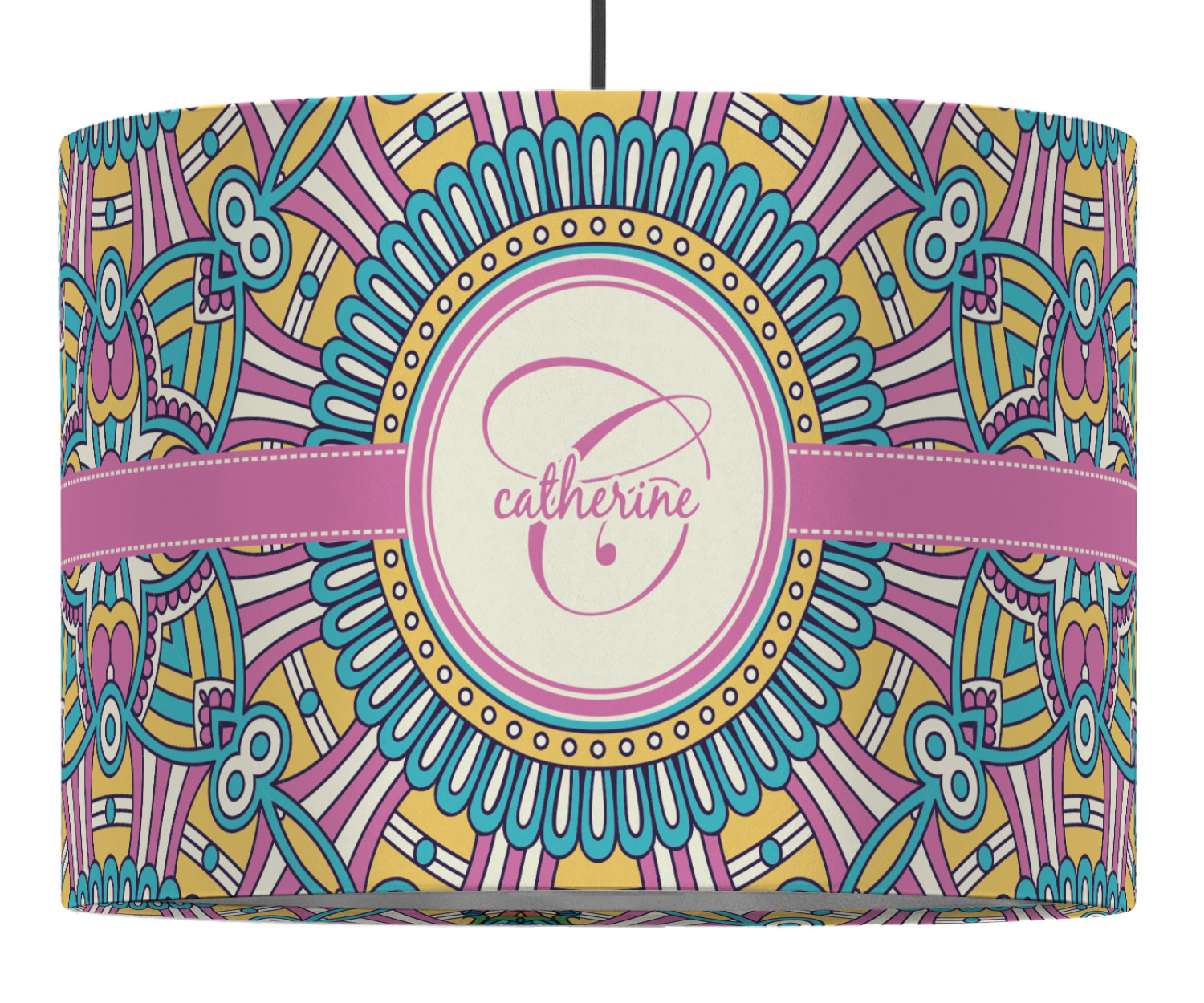 The designs main feature is its beautiful pattern. The pattern is filled with intricate detail and bohemian style shapes. The colors are a drastic difference from what you would normally see in a bohemian design, making this design all the more unique. You are able to put your personalization in the frame in the middle. The colors you will find are a bubble gum pink, teal, light yellow, and white.