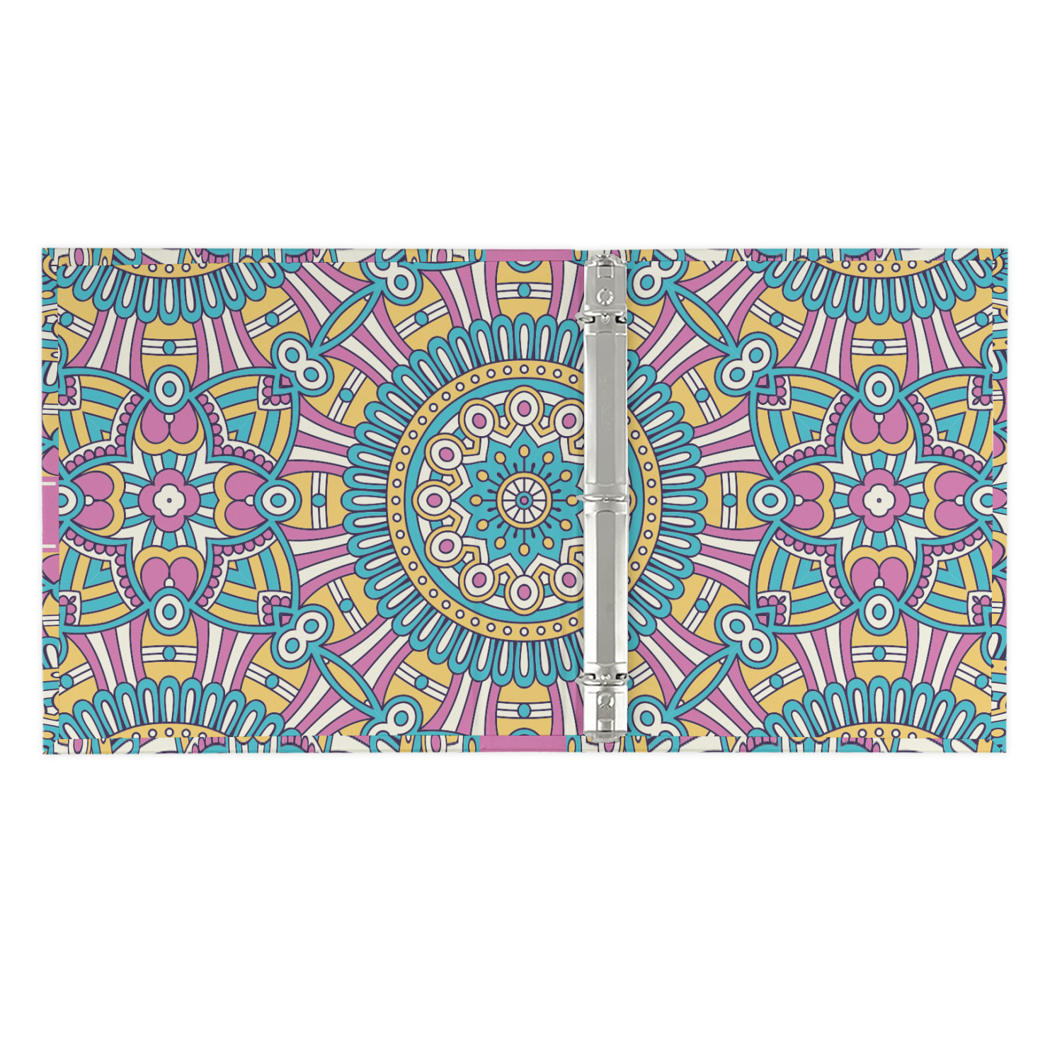 Made from a sturdy cardboard base with a full high quality canvas textured vinyl wrap with the design of your choice. Unlike our standard 3-ring binder with the full wrap design your artwork wraps from the front and back and into the inside of the binder.